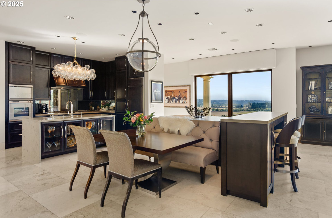 Welcome to 8418 Valley Way SE—where timeless elegance meets the tranquil beauty of Oregon wine country. Nestled along the quiet curves of Valley Way, just outside Salem, Oregon this exceptional estate offers 7,821sf of inspired living surrounded by rolling vineyards, golden farmland, and the charm of the Willamette Valley including unobstructed views of Mt. Jefferson and Mt. Hood. Step inside to discover a world of comfort and sophistication. The main level is thoughtfully designed with a chef’s kitchen built for culinary artistry, a private office that fuels productivity, and a spa-like primary suite complete with dual walk-in closets and a luxurious bath retreat. Wellness and relaxation are seamlessly integrated—from the indoor swimming pool and private gym to the secluded courtyard with a hot tub overlooking the estate grounds. Upstairs, an additional 1,738sf includes a second kitchen and lounge, ideal for guests, multi-generational living, or creative studio space. Expansive windows, natural textures, and effortless indoor-outdoor flow make this home a true expression of Pacific Northwest living—graceful, grounded, and endlessly inspiring.