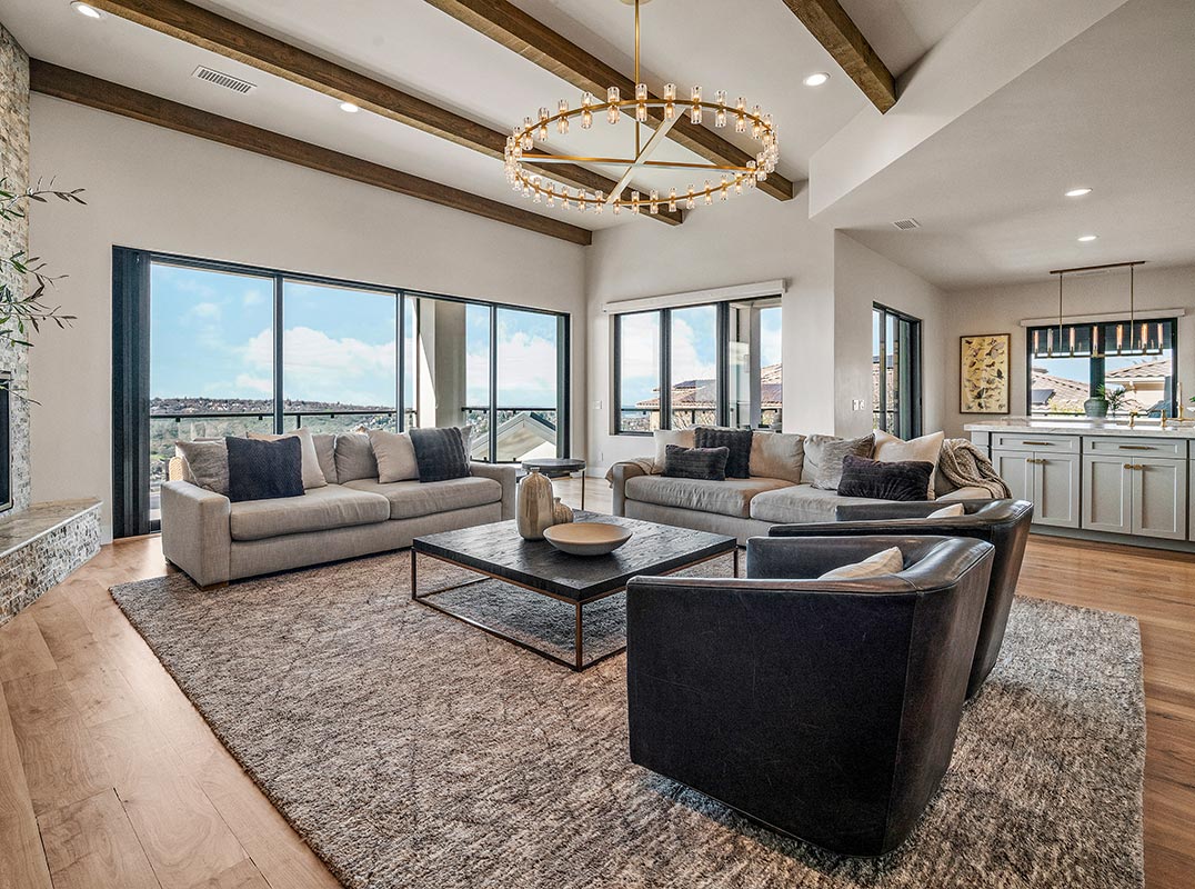 Newly renovated custom estate on one of Serrano Golf & Country Club’s most prestigious streets, offering sweeping views of Folsom Lake and city lights. Designed for luxury and entertaining, this home features six bedrooms, 5.5 baths, gym, theater, game room, kids’ retreat, and pub-style bar. Designer finishes include wide-plank walnut floors, Restoration Hardware lighting, and dramatic fireplaces. Chef’s kitchen with Sub-Zero and Wolf appliances, dual marble islands, and outdoor access. Primary suite opens to a private view patio. Covered loggia leads to cabana, pool bath, and resort-style grounds with pool, spa, sport court, and putting green. Over 5,800 sq ft with five-car garage, solar, and generator.