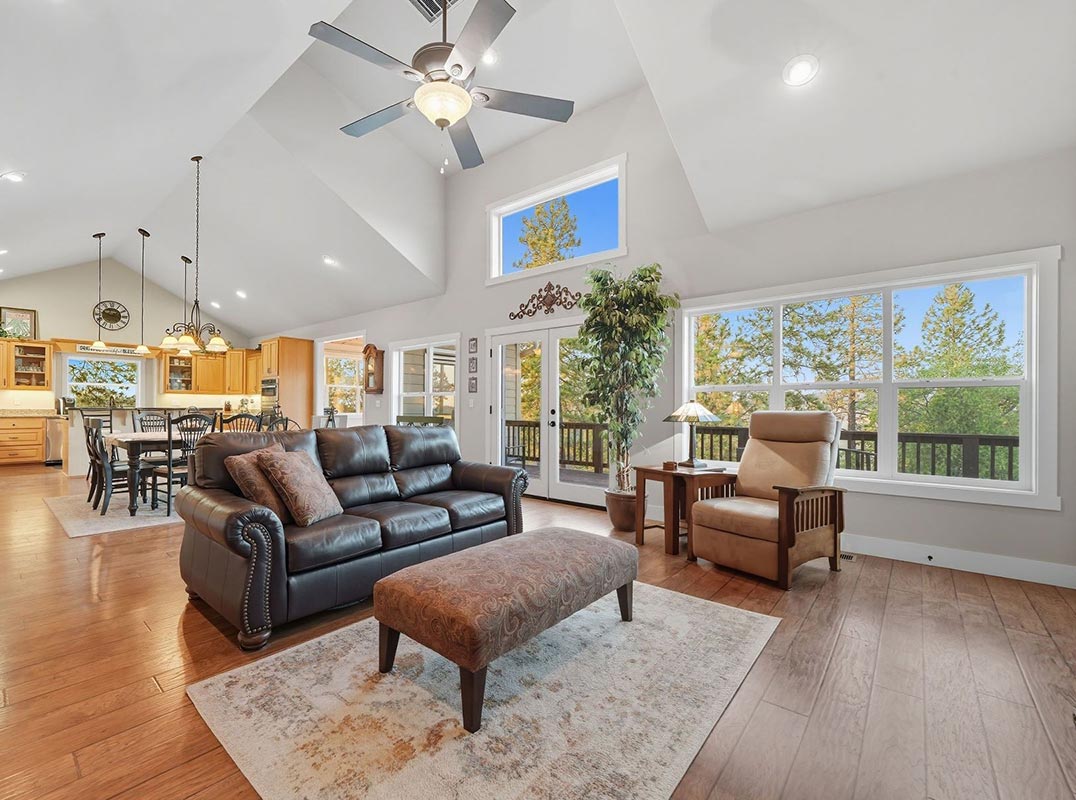 Set behind a gated entry, this 3,876 sq ft residence rests on 40 fully fenced and cross-fenced acres, where panoramic views and breathtaking sunsets create a stunning backdrop for everyday living. On the lower portion of the property, corrals provide space for animals and a cleared area offers the perfect site for a second home. Inside, the main level features an open-concept kitchen, dining, and living area with direct deck access for outdoor enjoyment, plus a versatile space ideal for a TV room or formal dining. The primary suite is a private retreat with its own deck access, dual walk-in closets, and a spa-inspired en-suite bath. A guest bedroom, full bath, office, and laundry complete this floor. The lower level is designed for entertaining with a spacious room, bar, and fireplace, along with a guest bedroom, full bath, bonus room easily converted to another bedroom, and a storage area with shower for animals. Outside, a 30x50 shop with electricity and water plumbing plus a 10x30 attached carport provide excellent utility. The oversized main garage includes an unfinished 416 sq ft space above, ideal for future living quarters. Additional highlights include cement board siding, 2x6 construction, motorized screens for the patio and breezeway, a water purification system with dual 2,500-gallon holding tanks, and Firewise community.