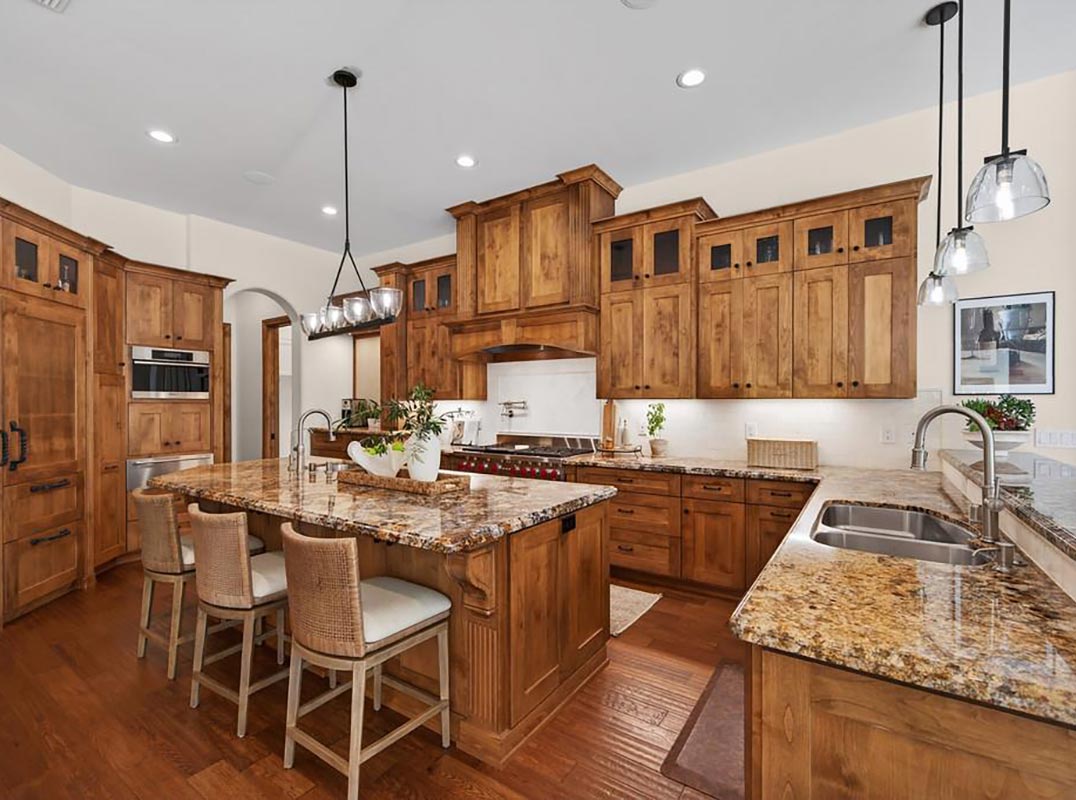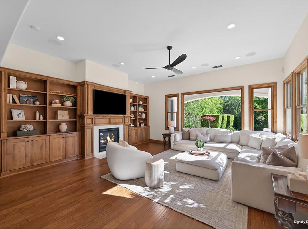 Behind the gates of the distinguished Serrano Country Club, this single-story custom home offers something increasingly hard to find-space, privacy, and the rare combination of expansive square footage and single-level living. Spanning over 4,800 square feet, the beautifully designed home features four bedrooms, 4.5 baths, a dedicated office, and a large multi-purpose room that can flex to fit your needs whether as a media space, game room, or separate retreat for guests or kids. Everything is laid out on one level, making day-to-day living feel easy and connected. The kitchen and family room lead straight to the covered patio and pool, turning outdoor living into an effortless extension of the home, with the formal dining room and wine cellar ready for more polished entertaining. Outdoors, the property's setting really stands apart. The home backs to a quiet greenbelt and is surrounded by mature landscaping that gives the property a sense of seclusion. The nearly 0.7-acre lot provides room to spread out, with a solar-heated Pebble Tec pool and covered outdoor dining area that make it just as livable outside as it is in. A private 5-acre park is just a short walk away, and the community's extensive hiking and biking trail system connects you to the surrounding hills. If you enjoy the country club lifestyle, the golf course, tennis and pickleball courts, fitness center, and dining are all within easy reach by golf cart. A solar system adds everyday efficiency, and the home is set within the highly regarded Buckeye elementary and middle school district and Oak Ridge High School. This home combines comfort, style, and effortless living in one of Serrano Country Club's most sought-after settings.