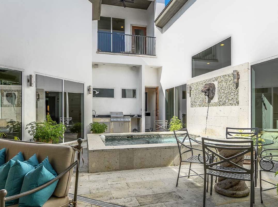 Unparalleled! Designed by Oscar Flores, this lavish property features artisan craftsmanship and exquisite finishes in The Dominion's desirable Cottages Estates. Cantera steps lead you to the front entryway and through a custom iron gate into the foyer. Step inside and be greeted by soaring ceilings and expansive windows, which provide captivating views from every room, afford ample opportunity to relish in the gem's extraordinary appointments. The interior is detailed with exceptional materials boasting exotic stones/marbles, smooth finished walls, custom architectural/ceiling details, and designer lighting. True chef's kitchen with double islands, solid wood cabinetry, and Black Absolute Leathered countertops offers stainless steel gas appliances, dual ovens, a warming drawer, and excellent storage. A secondary service kitchen is perfect for entertaining. At the center of the home is a serene courtyard with custom Cantera stone fireplace, martini pool, outdoor kitchen, and pool bath with a relaxing steam sauna. The master retreat is a pleasant oasis boasting courtyard access, expansive walk-in closets, coffee bar, and a spa-like bath adorned with marble, imported fixtures, and steam shower. Two spacious guest bedrooms, both with en-suite baths, and a gym/bonus room are found on the second level along with two balconies with one overlooking the courtyard and the other at the rear of the home offering expansive views. A casita off the main foyer provides an ideal location for guests complete with en-suite bath. The rear entry two-car garage provides ample storage with built-in cabinetry. Located minutes away from The Lakes, walking trails, and Dominion Country Club.