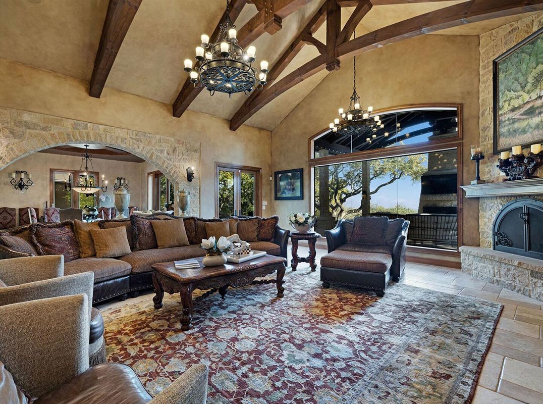 Set behind a private gated entry on 3.24 acres, 14454 Santa Rita commands a remarkable setting with sweeping Hill Country views and the rare advantage of backing to more than 12,000 acres of restricted conservation land at Government Canyon. The sense of privacy is immediate, with an expansive natural backdrop that brings both scale and serenity to the property. The residence is designed to balance everyday livability with a high level of finish, offering four bedroom suites in the main home, each with its own full bath, along with two additional half baths and a separate casita with a full bath for guests. Throughout the interior, true hand scraped hardwood floors, Versailles pattern travertine, solid wood beam accents, plantation shutters, extensive custom built ins, and layered ceiling details reflect the home's quality and craftsmanship. The family room is anchored by a vaulted ceiling and a stacked floor to ceiling stone fireplace, while the library connects to an upstairs office, creating a refined and functional workspace. At the center of the home, the kitchen is appointed with Wolf stainless steel appliances, double ovens, a large walk in pantry, and a butler's pantry. Additional highlights include a true temperature controlled wine room, whole home audio, custom painted wall finishes, and distinctive Chris Voss chandeliers throughout. The primary suite serves as a private retreat with direct access to its own patio and generous walk in closets with built in shelving, while the secondary bedrooms are finished with built ins and window seats that add both charm and utility. Outdoor living is equally well considered, with extensive flagstone decking, multiple covered terraces with wood paneled ceiling accents, and several gathering spaces positioned to take full advantage of the views. An outdoor kitchen with grill and fireplace overlooks the infinity edge pool with beach entry, completing a property defined by privacy, craftsmanship, and an extraordinary connection to the surrounding landscape.