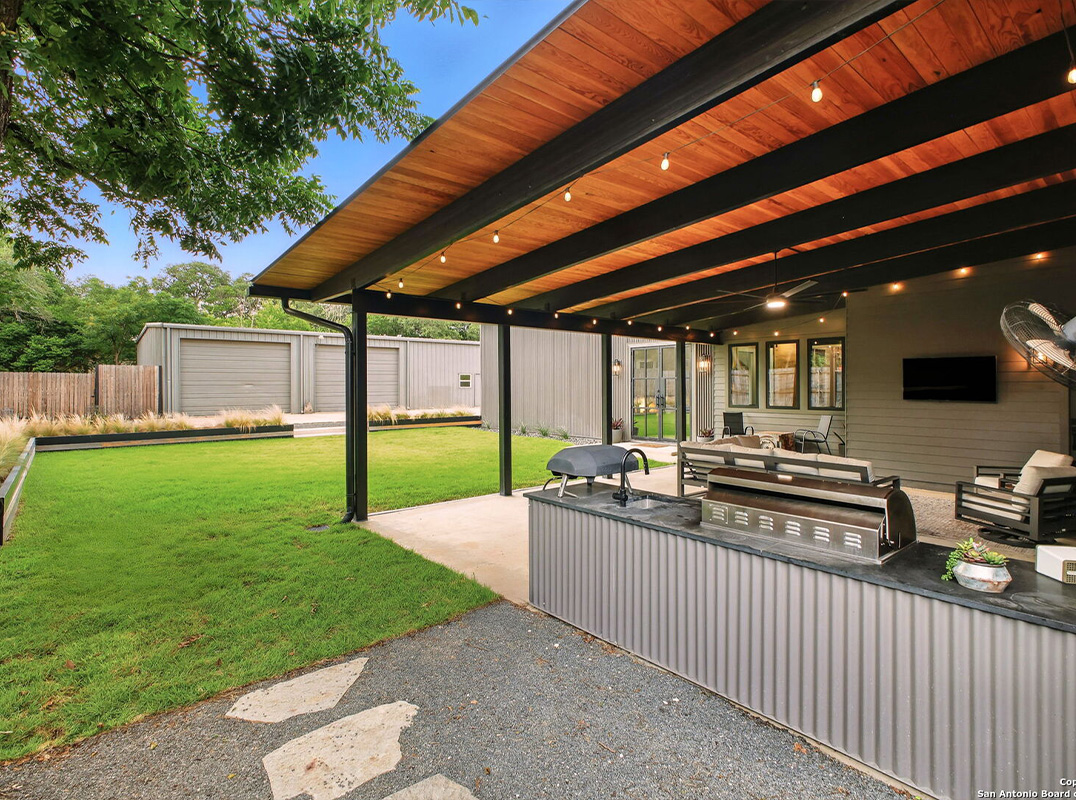 Modern Luxury Meets Industrial Strength in Castle Hills This one-of-a-kind, 5,300 sq. ft. residence sits on a spacious 3/4-acre lot in the heart of Castle Hills and includes a separate 2,400 sq. ft. detached garage/workshop-perfect for hobbyists, collectors, or entrepreneurs. Completely renovated from the studs up, this home was thoughtfully rebuilt to preserve and showcase original steel elements, blending modern comfort with timeless industrial character." -into a stunning four-bedroom, three-and-a-half-bath residence with dual primary suites (one upstairs, one down) and an attached two-car garage. Designed with timeless elegance and lasting durability, the home features commercial-grade steel construction and abundant natural light through expansive windows. Every detail has been thoughtfully curated by interior designers, from premium tile and flooring to refined hardware and fixtures that exude classic sophistication. The gourmet kitchen flows seamlessly into open-concept living and dining areas, while the expansive covered back patio is an entertainer's dream-complete with a full outdoor kitchen. Beyond the patio, a lush lawn leads to a separate 2,400 sq. ft. garage/shop outfitted with three-phase electricity, offering endless possibilities for hobbyists or entrepreneurs. Whether you're operating welding equipment, hydraulic car lifts, or even kilns for ceramics or glassblowing, the power infrastructure is already in place. No detail was overlooked in this thoughtfully engineered home. A rare opportunity to own a truly unique, high-performance property in one of San Antonio's most desirable neighborhoods. Six minutes to Medical Center and 5 minutes to the SA Airport! Seller offering $150,000 pool allowance.