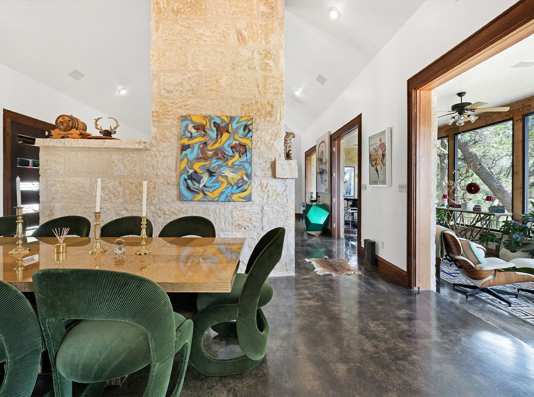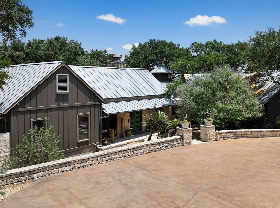 our own private Hill Country haven just minutes from I-10. A truly exceptional 5.93-acre retreat that backs to an 800-acre private preserve, offering spectacular panoramic views, unmatched privacy, and the freedom of unrestricted living. This peaceful estate features a 3,272 sqft custom Rustic Contemporary home designed for comfort and elegance. Soaring vaulted ceilings and limestone accent walls create a dramatic yet warm atmosphere in the living and dining areas. The gourmet kitchen is a chef's dream, boasting a massive granite center island, custom cabinetry a striking copper vent hood, Viking gas range, and a generous breakfast area that invites casual dining with stunning views. The spacious primary suite is a private sanctuary with patio access, a spa-inspired bath featuring dual granite vanities, frameless glass shower, and custom his-and-her walk-in closets with built-ins. The split floor-plan ensures privacy, with generous secondary bedrooms thoughtfully positioned away from the master wing. Step outside to a screened patio, fully fenced grounds and multiple luxury lifestyle amenities. A detached 850 sqft gym with a full bath offers flexibility as a fitness space, guest house, or creative studio. Adjacent is a spa for the ultimate relaxation. Entertain effortlessly at the outdoor kitchen, complete with a pizza oven and authentic Argentine grill. For the enthusiast or collector, the property includes a massive 2,400 sqft climate-controlled garage perfect as a mega man cave, workshop, or car collector's dream setup. In addition to the main garage, the property includes general garage parking for 10+ more vehicles, offering a total setup that's virtually unmatched for nearly 20 vehicles. Whether you're a serious collector, hobbyist, or just want the ultimate space to store, work, and entertain - this property delivers on all fronts. State-of-the-art security with RFID gated entry that ensures both privacy and convenience. This is Hill Country living at its finest. Luxury, freedom, and endless views. Schedule your private showing today.