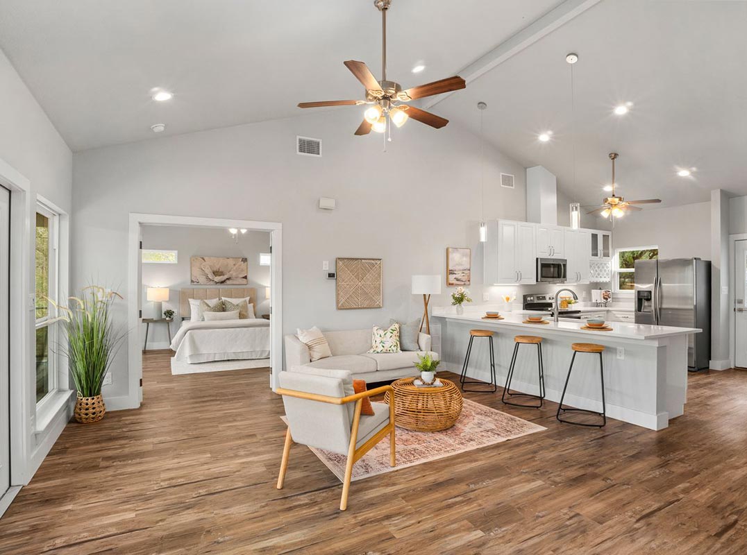 Nestled along the Guadalupe River, The River Retreat at Spring Branch is a rare Hill Country sanctuary with two acres of unspoiled beauty and 200 feet of direct river frontage. This is more than a home; it's a property designed for connection, celebration, and quiet river life. Lovingly held by one family for years, the property features two homes and has been a backdrop for countless gatherings and riverside memories. Now it's ready for a new chapter. Recently appraised at $2.2 million, it offers $500,000 in instant equity at its current list price of $1.7 million, with short term rental Airbnb potential. The main residence, spanning 4706 square feet, unfolds across multiple levels that seem to float among the trees. Five bedrooms and three and a half baths provide generous space. Upstairs, the primary suite is joined by two additional bedrooms connected by a Jack-and-Jill bath, while a series of decks and an enclosed patio create an atmosphere that feels secluded. Downstairs, an expansive entertaining level includes a game area, a secondary catering kitchen, and a dumbwaiter that connects both kitchens effortlessly. Two additional bedrooms, a new hot tub, fire pit, pool and a three car garage complete this thoughtfully designed home. Closer to the river, a second residence was built in 2018 and offers 1,314 square feet of relaxed modern comfort. With three bedrooms, two baths, and an additional pool bath beneath the home, it's ideal for guests or rental. Constructed on steel pylons driven approx. 16 feet into the ground for durability and peace of mind, the casita opens through French doors to a shaded patio overlooking the Guadalupe River. This property was made for spending time outdoors, with a smooth sloping yard leading down towards the water. Store kayaks and floats underneath the casita, and use the covered space for gathering with family and friends. Whether you see it as a family getaway, a full time residence, or an income opportunity, The River Retreat at Spring Branch offers a special slice of Hill Country river life.