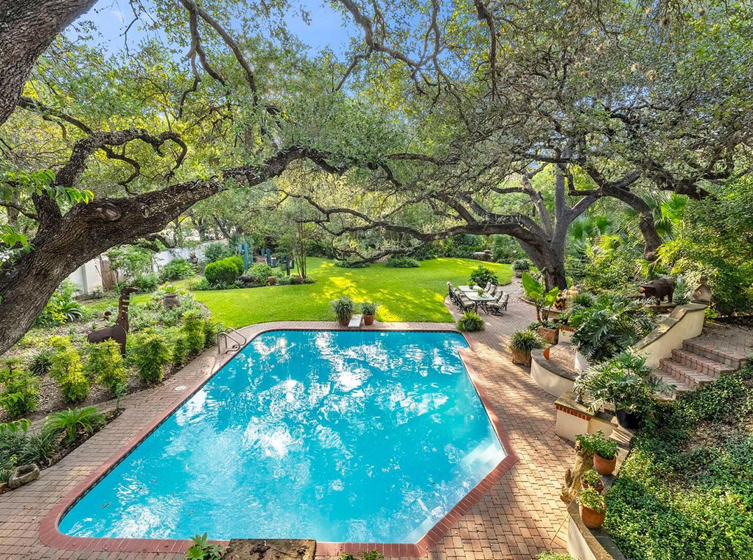 Welcome to a rare architectural gem nestled in the heart of the prestigious Marymont Subdivision. This distinguished estate blends timeless elegance with natural beauty, creating a tranquil retreat unlike any other. Set on an expansive 0.67-acre lot, this property offers unmatched privacy and a serene outdoor escape featuring lush landscaping, a sparkling pool, and a breathtaking four-tiered waterfall-your very own secluded oasis. Inside, the home is a showcase of sophisticated craftsmanship and old-world charm. From rich Italian marble flooring to handcrafted woodwork and vibrant Talavera tile throughout, every detail has been meticulously curated and maintained. Elegant Cantera columns frame the interiors, adding a touch of grandeur and warmth that elevates the living experience. The seamless indoor-outdoor connection is a standout feature. Whether you're enjoying a morning coffee from the kitchen, hosting from the den, or relaxing in the spacious Primary Suite, multiple access points to the balcony invite you to soak in the serene views and soft sounds of your private paradise. This fluid transition between interior and exterior living spaces enhances the home's charm and livability. Don't miss the opportunity to own this irreplaceable sanctuary that effortlessly blends refined luxury with natural beauty-where architecture and nature coexist in perfect harmony.