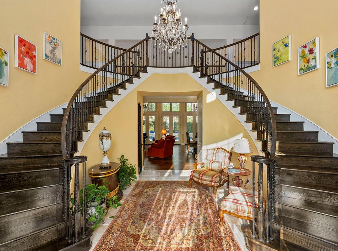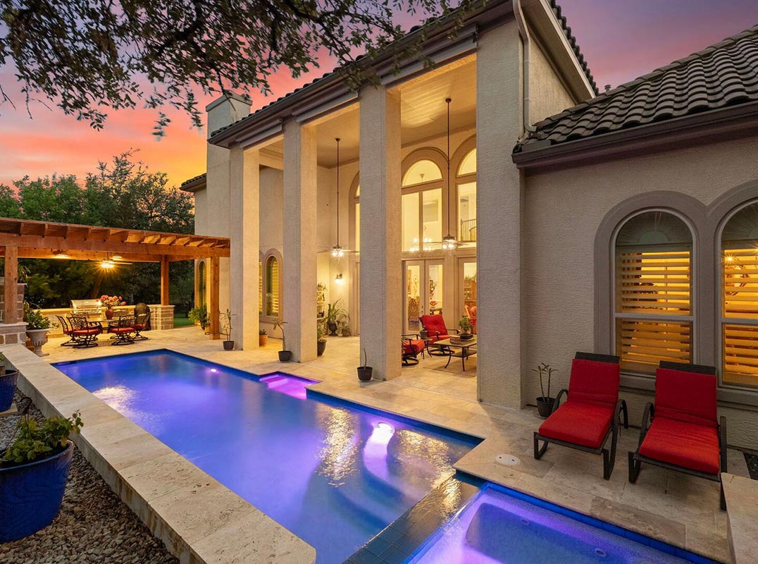 Exquisite Estate in The Dominion on expansive Cul-de-Sac Lot nestled on a spacious 0.36-acre cul-de-sac lot in the prestigious Dominion community, this elegant residence is surrounded by majestic, mature trees that provide serene privacy and natural beauty. Designed with the entertainer in mind, the generous layout seamlessly accommodates both grand gatherings and intimate evenings. Recent upgrades include a freshly painted interior, travertine and hardwood floors throughout the main level, plantation shutters, eight designer chandeliers, programmable thermostats, a water softener, and newly installed utility room cabinetry. The powder bath has been beautifully remodeled with a chic new vanity and designer wallpaper, adding a refined touch. Step into the light-filled living spaces enhanced by soaring ceilings, crown molding, and floor-to-ceiling windows. Formal and informal living and dining areas provide abundant versatility, while a dedicated wine cellar adds a luxurious flair.