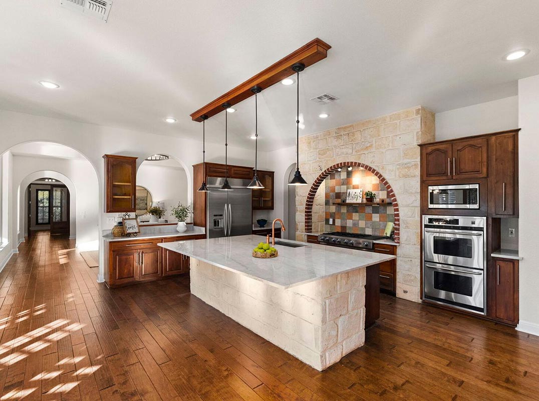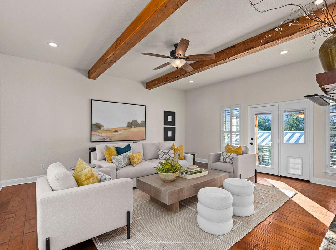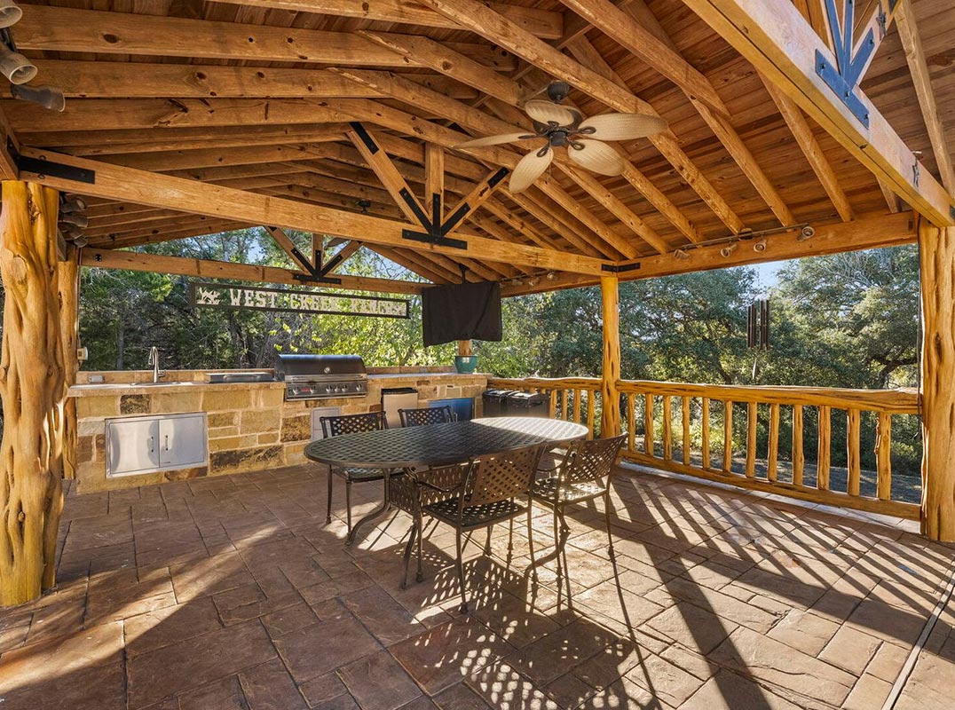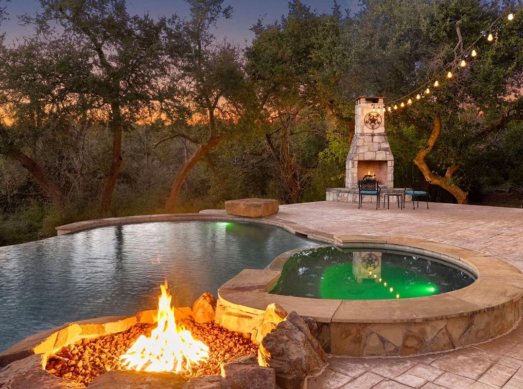 LUXURY, LAND AND LONGHORNS await you at this rare 15-acre Texas estate conveniently positioned between the quaint German town of New Braunfels, the gateway to the Hill Country town of Spring Branch, and just a short drive to Boerne, San Antonio, and Austin! This exquisite property includes a beautifully updated Tuscan-inspired farmhouse with a versatile floorplan and room for all. Memories with friends and family will be easy to create in this private Hill Country oasis with superb Texas sized living, land, storage and entertaining spaces. The spectacular outdoor oasis includes an infinity edge pool, multiple entertaining spaces accentuated with three fire features, and large covered outdoor kitchen area with all the essentials. Alfresco dining is ensured as the entire patio and pool area is surrounded by a flying insect repellant system with automatic timer. The inviting, 35,000 gallon heated, lagoon-style pool features a beach entry, bubblers, submerged bar seating, eight-foot diving end, fitness swim jets, infinity edge and adjoining extra deep spa with cascading water. The beautiful, curved staircase joins the upper and lower patio areas for ease of entertaining or enjoy the night sky as you stargaze from your second story terrace. The property has three distinct areas and is fenced and cross-fenced and ready for your livestock, or simply enjoy the herd of majestic longhorns that roam the neighborhood. The rear native portion offers a peaceful retreat with a seasonal creek and a historic stone wall originally built by German settlers to the area. The private well accesses the Edwards Aquifer Recharge Zone directly and has easily met this property's water needs. The 1250 square foot shop/barn set away from the home, showcases dual rolling overhead doors, epoxy flooring, and halogen lighting to easily accommodate your toys and equipment. Come tour this stunning property to truly appreciate all that it offers.