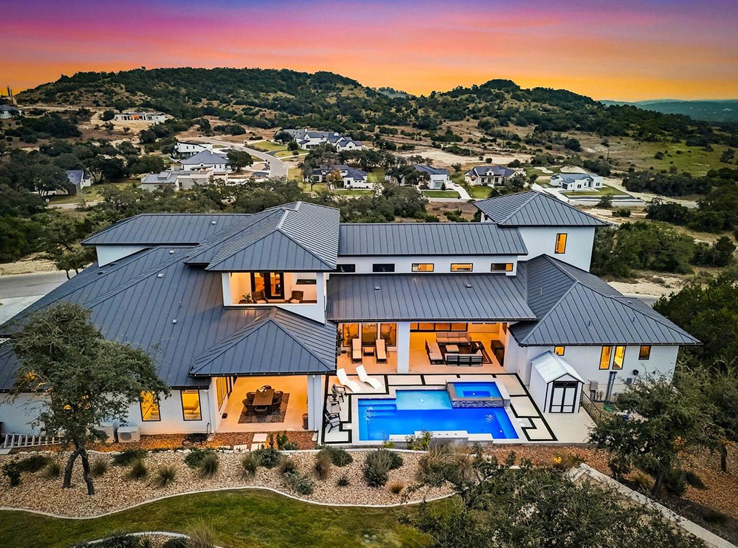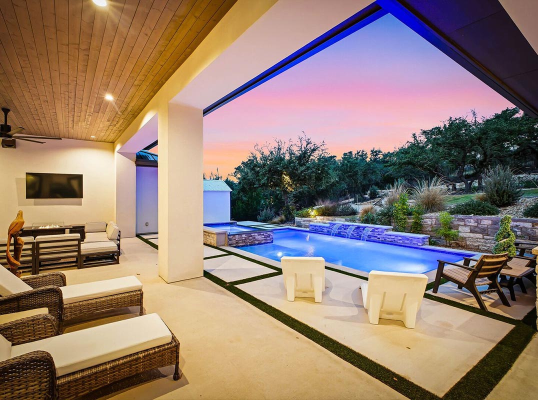 Welcome to 23315 Ebner Ridge, a commanding hilltop residence in the elite gated community of The Canyons at Scenic Loop. Set on a full acre with remarkable privacy, this architectural statement home pairs modern sophistication with the kind of Hill Country beauty that feels both expansive and intimate. A custom landscape and lighting design valued at one hundred seventy five thousand dollars guides you toward ten foot iron doors that open into a grand living space anchored by an eighteen foot tile accent wall and a sixty inch gas fireplace. The gourmet kitchen is a true showpiece with JennAir appliances, a one hundred fifteen bottle glass wine cellar, a six burner gas cooktop, double ovens, a ten foot double island, and Michael Edwards custom cabinetry with a paneled refrigerator that elevates the entire space. An attached casita offers comfort for guests, and a dedicated golf simulator room brings year round recreation to your doorstep. Accordion style bar windows allow you to serve refreshments indoors or out, creating a seamless gathering space that feels effortlessly luxurious. Sixteen foot sliding doors lead to a resort caliber backyard with a modern pool, heated spa, three expansive balconies with sweeping Hill Country views, a full outdoor kitchen, and designated spaces for a future putting green or playscape. Every detail invites relaxation, connection, and celebration. With five bedrooms, four baths, a spacious three car garage, and quick access to La Cantera, The Rim, the Medical Center, UTSA, and major employers, this home offers a lifestyle that is both refined and incredibly convenient. Homes of this caliber rarely become available. Schedule your private showing and experience a level of luxury that inspires your next chapter.