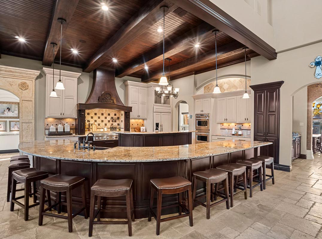 Positioned behind the guarded gates of Terra Mont, 8730 Terra Gate is an exquisite Mediterranean estate spanning over 9,000 square feet, crafted for those who value scale, privacy, and architectural presence. Thoughtfully designed by the seller, every element of this custom residence was carefully considered to maximize both privacy and livability. From the intentional separation of spaces to the flow between rooms, this regal home offers a rare balance of grandeur and comfort, allowing for large-scale entertaining while still providing a sense of retreat for every occupant. Each bedroom is designed as a true suite, ensuring space and privacy for all. From the moment of arrival, the residence distinguishes itself through timeless design and a level of construction rarely achieved in today's market. Built with intention and over-engineered in its execution, the home reflects enduring quality, curated materials, and craftsmanship that goes beyond surface-level luxury. Expansive interiors are defined by soaring ceilings, natural stone and wood finishes, and a layout designed to accommodate both grand-scale entertaining and refined daily living. Multiple living and dining areas create seamless flow throughout, while dedicated spaces, including a media room, office, and private gym, support a well-rounded, elevated lifestyle within the home itself.