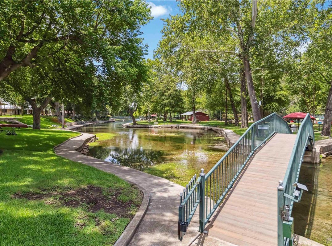With exclusive access to the Island, you can enjoy the Comal River from your private river playground, just a two-minute walk away. After swimming, you can retreat to the Colonial-style home which sits on a corner lot, surrounded by towering trees and carefully planned landscaping. The home has 5 bedrooms, 3 bathrooms with a half bathroom downstairs. The primary bedroom and bathroom are on the first floor while the remaining rooms are located upstairs. The wood and stained concrete floors flow throughout the downstairs with carpet lining the stairway. The kitchen boasts a TRUE® commercial grade, side-by-side refrigerator/freezer with a pantry and laundry room off to one side. The oversized study can be found just inside the front entryway with floor-to-ceiling, built-in bookshelves that feature sliding wooden doors. Meticulously maintained, the property includes a cozy and engaging backyard with a covered patio and detached 2-car garage that includes extra storage. If you choose to venture out from your peaceful oasis, Schlitterbahn, Gruene Hall and downtown New Braunfels are all just minutes away. Don’t miss this extraordinary opportunity—schedule your private tour today!