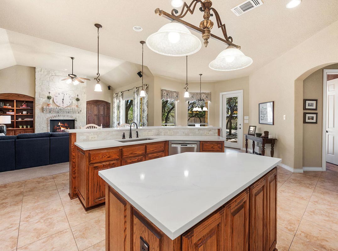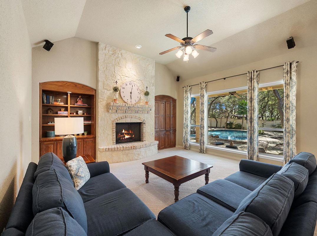 There's something enduring about a thoughtfully designed one-story - where the proportions feel balanced, transitions unfold naturally, and the layout simply makes sense from the moment you walk in. At 27662 Oak Brook Way, 3,711 square feet stretch gracefully across a single level, creating a floor plan that lives with both ease and intention. Through the leaded glass front door, the formal living room welcomes you with expansive windows that wrap the corner of the space. A striking frameless glass corner detail draws in natural light from two sides, and as you move through the room, the view of the pool slowly comes into focus - a subtle architectural moment that beautifully connects indoors and out. The updated kitchen blends timeless design with everyday function, featuring quartz countertops, a gas cooktop, generous cabinetry, and a neutral-toned backsplash highlighted by a niche detail with its own distinctive pattern - a quiet touch of character. It opens effortlessly to the main living and dining areas, making the home as comfortable for daily life as it is for entertaining. With two living spaces, two dining areas, and a private study, the layout offers flexibility without sacrificing flow. The primary suite provides a peaceful retreat, while the bath has been thoughtfully refreshed with updated countertops and undermount sinks that enhance both function and finish while honoring the home's classic style. Positioned on the opposite side of the home, the spacious secondary bedrooms offer privacy and comfort for family or guests. A conveniently placed half bath with direct access to the pool area adds ease for gatherings and outdoor living. Outside, the recently resurfaced pool accented with Lampasas stone, along with the spa, outdoor kitchen, and expansive covered porch, creates a setting designed for relaxed evenings and effortless entertaining. The beautifully treed half-acre lot offers both space and presence within the neighborhood. A three-car garage with polymer-coated floors completes this impeccably maintained Boerne home - a seamless blend of architectural detail, meaningful updates, and exceptional single-story living.