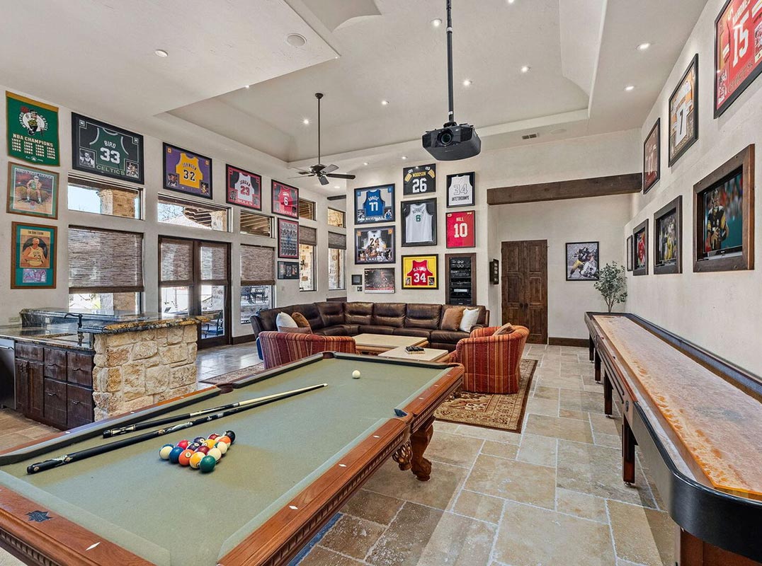 When it's time to watch your favorite sporting events or movies retreat to the impressive billiards room! There is no need to leave your home when you have your own billard's room. The impressive features 4 television screens plus a projector. The well equipped bar is complete with a sink, beverage cooler and beer tap, dishwasher and ice maker. The private study and secondary bedroom suites, complete the timeless interior. The heart of this property are the well-executed outdoor tiered living areas, which cohesively blend manicured lawns, meandering flagstone walkways and beautiful natural vegetation, to create a true resort-style experience! The outdoor living area - complete with a resort style beach entry pool and dual spas offers the perfect venue for year around entertaining. The expansive covered patio boasts a smoker, grill, fireplace and is surrounded by unsurpassed scenic views of the Hill Country. Your guests will feel at home, while staying in the one-bedroom casita, complete with a living area and kitchenette! The newly two bedroom guest house is equally as impressive as the main residence and boasts all the essential amenities. Appointments include stately arched distressed wood doors, spacious living area, gourmet kitchen, utility room and a sprawling loft! This property was well designed to meet everyone's needs! Even the pets have their own built-in pet shower in the utility room! Come experience refined Hill Country living, within close proximity to the Cordillera Ranch River Park, the Guadalupe River and the Club!