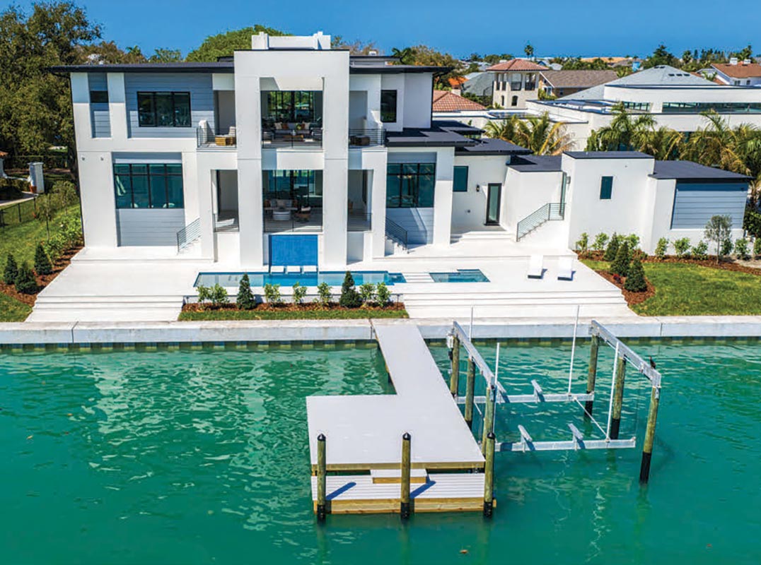 Defined by a rarely found 155 +/- feet of seawall and deep-water dockage with accommodations for large vessels or multiple watercraft, this visually stunning new construction estate is positioned among a collection of newly constructed waterfront homes. Capture the advantage of newer luxury construction paired with a sought-after boating and waterfront lifestyle in Tierra Verde.
