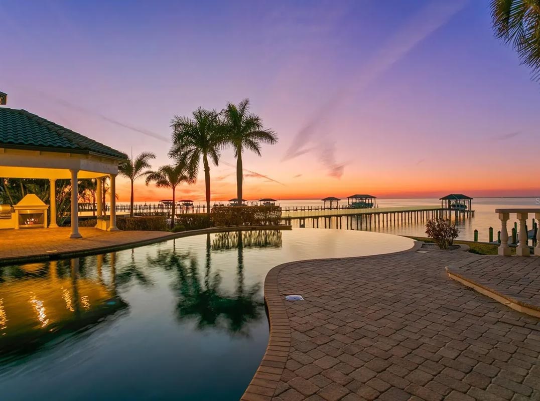 Spectacular Florida waterfront living awaits outdoors with a covered lanai, outdoor kitchen, and outdoor fireplace that overlooks a stunning resort-style infinity pool with multi-waterfalls and majestic Bay beyond. Additional appointments include a backup generator, water softener system, smart security and gate system, Anderson doors/windows, surround sound, fortified seawall, and 4 car garage spaces with spare utility space. Immerse yourself in magnificent waterfront living and embrace all that Apollo Beach has in this popular waterfront community. Featuring an abundance of recreation on and off the water, a central location provides easy access to beaches, shopping, dining, parks, Tampa, St. Petersburg and Sarasota.