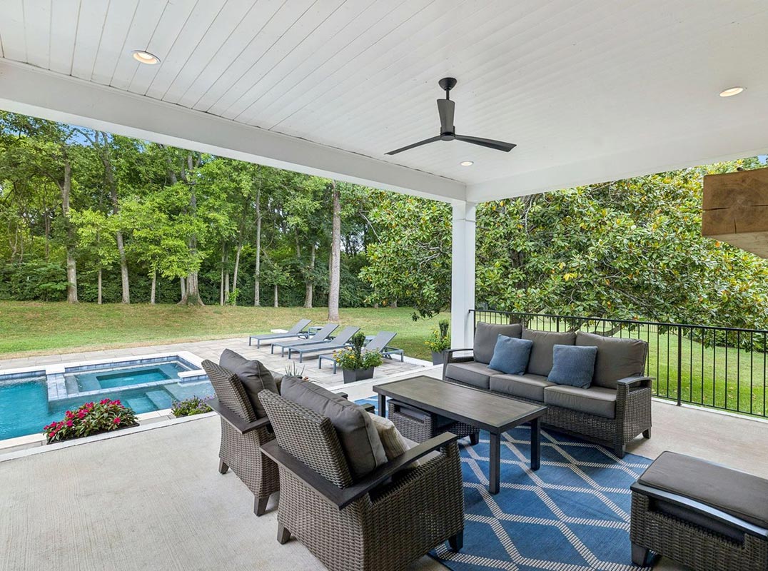 Luxury, comfort, and convenience meet at 5116 Williamsburg Rd in the sought-after Meadowlake community of Brentwood. From the moment you arrive, the beautiful white brick exterior, welcoming covered front porch, and inviting entry foyer set the tone for the elegance inside. Just off the foyer, the formal dining room features a shiplap accent wall, creating a seamless connection to the home’s timeless design details. The heart of the home is the gourmet kitchen, boasting top-of-the-line appliances, ceiling-height cabinetry, a large center island, quartz countertops, a hidden walk-in pantry, and a spacious breakfast nook with a continued shiplap accent wall. The adjoining living room offers a cozy fireplace framed by wooden beams, custom built-in shelving, and dual French doors that open to the covered back porch—perfect for indoor-outdoor living. The main-level primary suite is a private retreat, showcasing a vaulted shiplap ceiling, bay window seating area, and a spa-inspired bath with a stand-alone soaking tub, double vanities, a dedicated makeup station, built-in tile bench in the shower, and a walk-in closet with custom storage. A guest suite on the main floor provides ideal accommodations for visitors. Additional thoughtful touches include a drop-zone with hooks and a bench, and a large laundry/utility room with generous counter space, hanging rods, and even a desk work area. Upstairs, you’ll find a dedicated office or creative space, a spacious bonus room with a wet bar and beverage center, three more bedrooms, two full baths, and abundant unfinished storage space—offering room for future expansion. Step outside to your private 1-acre, fenced backyard oasis, complete with a covered porch featuring a fireplace, a sparkling heated saltwater pool, and an integrated spa—all backed by mature trees for privacy. Zoned for Williamson County’s award-winning schools and ideally located near shopping, dining, and I-65, this home offers the ultimate living experience.