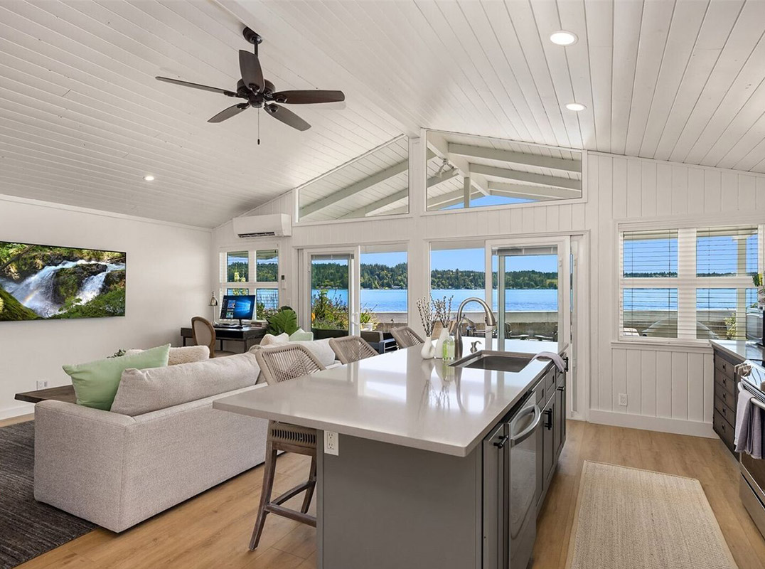There is a moment—just as you leave the city behind—when everything begins to slow. This is where it leads. A beautifully remodeled Hood Canal retreat with 50' of no-bank bulkhead frontage and owned tidelands, where weekends stretch longer and time feels different. Just an easy drive from Seattle or Bellevue, it is the kind of place you arrive Friday afternoon and instantly exhale. Wake to soft eastern light over the water. Step outside with coffee in hand, the canal just feet away. Spend your day paddleboarding, kayaking, or beachcombing, harvesting oysters and clams from your own shoreline. As evening falls, gather on the covered deck, light the firepit, and take in the stillness of the canal. Inside, vaulted ceilings and expansive windows invite light and calm. Whitewashed cedar walls and ceilings pair with warm LVP flooring for a relaxed coastal aesthetic. The remodeled kitchen is designed for effortless entertaining, while the primary bedroom offers flexibility with barn doors. A guest bedroom and updated 3/4 bath complete the home. Detached garage, ample parking, fenced yard, and option to purchase furnished create an easy lock-and-leave retreat—close to the city, yet a world away. It is the luxury of simplicity: a place to gather close friends, host effortless summer weekends, and give busy lives a beautiful reset. Rarely does a waterfront property feel this approachable, this polished, and this easy to enjoy from the moment you arrive. In every season, it delivers.