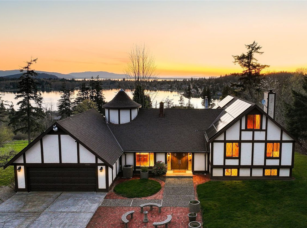 This sprawling estate on five private acres, is now offered first time on the market since its construction. A long, winding driveway leads to a timeless Tudor perched a plateau, rich in character and perfectly positioned to take in some of the most captivating views. The west facing panoramas stretch from Lake Whatcom to Bellingham Bay, across the city lights and out to the San Juan islands. This setting feels worlds away, yet remains minutes from the heart of Bellingham. The home includes four bedrooms with the primary suite featuring a private deck, a large loft with amazing views out the tower windows, a lower level for games and hobbies, a finished attic with cedar walls perfect for a playroom, plus a separate two-bedroom mother-in-law suite with its own entrance and patio that provides flexible space for guests or multi-generational living. The grounds are equally impressive, with a charming yet substantial sized barn and loft space offering endless potential. Plus a full-size, fenced and lighted tennis court for year-round recreation, while the pond and surrounding acreage create a rare sense of seclusion. Enjoy convenient lake access at the end of E. North Street—perfect for swimming, kayaking, and embracing the outdoor lifestyle this exceptional property brings.
