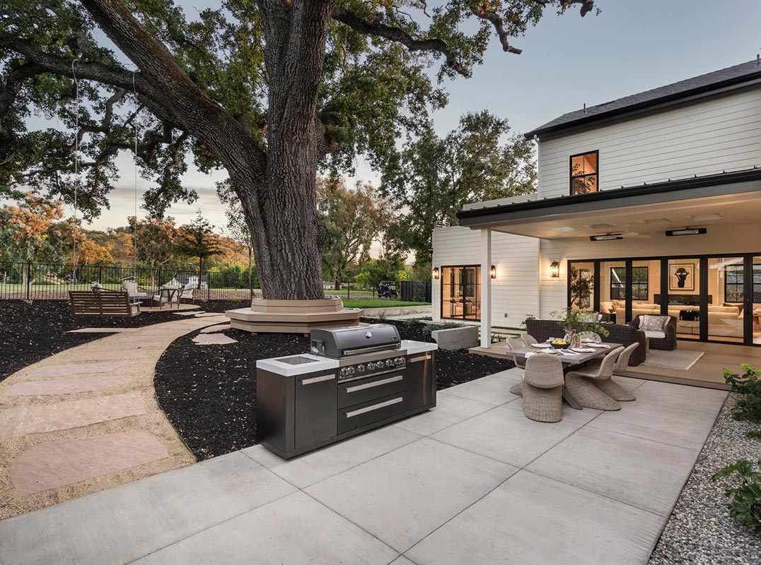 Approaching this brand-new custom home in sought-after Danville--backing onto Diablo Country Club Golf Course--you'll find timeless design, premium finishes, and exceptional craftsmanship. Designed by John Newton, built by CS Development under Cristian Szilagy, and styled by Roxana Szilagy, no detail is overlooked. Inside, 22 ft. high foyer ceiling, white oak floors, stone countertops, and smooth-finish walls set a refined tone. Custom lighting and Andersen windows elevate every space, while owned solar adds efficiency. A striking foyer accent wall introduces formal living spaces. The chef's kitchen shines with Taj Mahal quartzite counters, handmade Zellige backsplash, white oak cabinetry, walk-in pantry, Wolf cooktop, Thermador appliances, and an oversized island flowing to the family and dining rooms. Accordion doors open to a covered patio, perfect for entertaining. Two main-level suites offer ideal flexibility. Upstairs, the vaulted primary suite boasts a fireplace, balcony, spa bath with Calacatta Gold marble, dual closets, and laundry access. A loft and two bedrooms complete the level. Outdoors, enjoy a covered patio with skylights, firepit, lawn, and majestic oak. Within San Ramon Valley School District and near Blackhawk & Diablo Country Clubs, this is a rare opportunity.