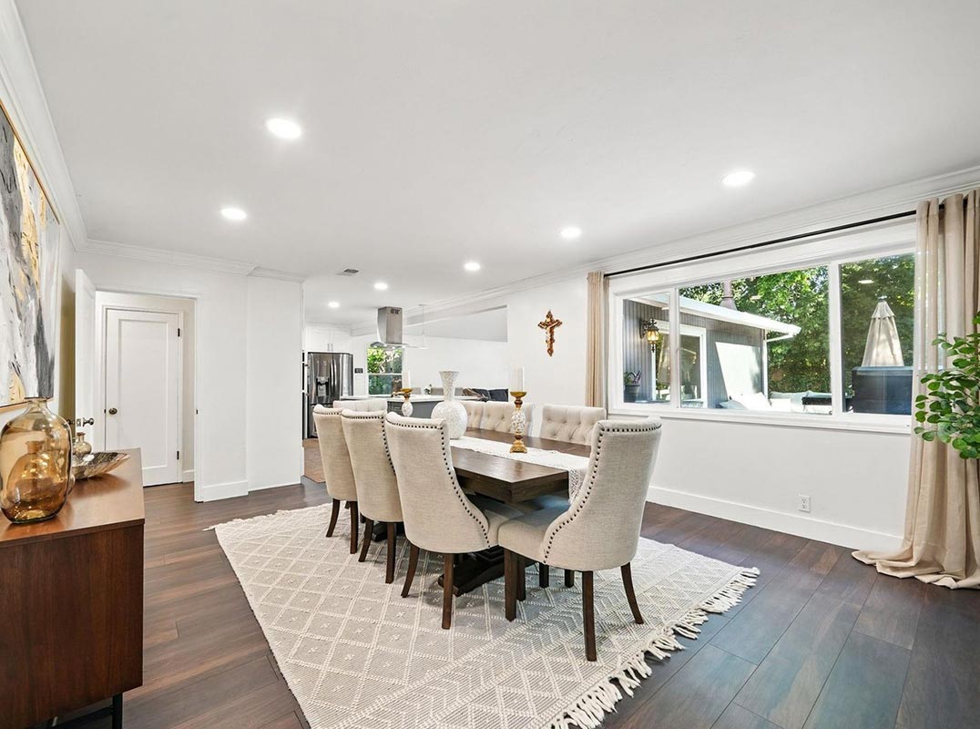 Experience exceptional living in this fully renovated, designer-crafted residence in Walnut Creek’s prestigious Parkmead neighborhood. This 5-bedroom, 3-bathroom home offers 3,152 sq ft of elegant living space on a flat 0.25-acre lot—just a 5 minutes walk to downtown, top schools, and upscale amenities. Soaring vaulted ceilings and expansive dual living rooms create an airy, grand atmosphere throughout. A formal dining room and open-concept layout are ideal for both intimate gatherings and entertaining at scale. The custom chef’s kitchen is the heart of the home—complete with a large center island, premium stainless steel appliances, and bespoke cabinetry. It flows effortlessly into the family room and dining area for seamless everyday luxury. The primary suite is a tranquil retreat featuring vaulted ceilings, dual vanities, and a spa-style walk-in shower. Smart home integration with Alexa, wide-plank flooring, and high-end finishes elevate the experience throughout. Outside, enjoy resort-style living with a built-in BBQ, wine refrigerator, and sink, surrounded by lush, professionally landscaped grounds. The generous backyard offers space for entertaining, relaxation, and recreation. This is a rare opportunity to own a turnkey luxury residence in Walnut Creek.