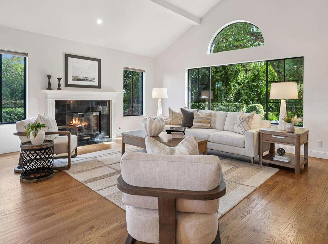On the main level, a full guest suite with a private entrance, a true retreat for guests or extended family. With gorgeous views of the backyard, a formal office (or second bedroom) with fireplace, provides a quiet, refined setting for work or study, making remote productivity a breeze. From the office, step through french doors into the lovely backyard. Rich hardwood flooring flows throughout, adding warmth and continuity to the layout while complementing the home’s elevated aesthetic.