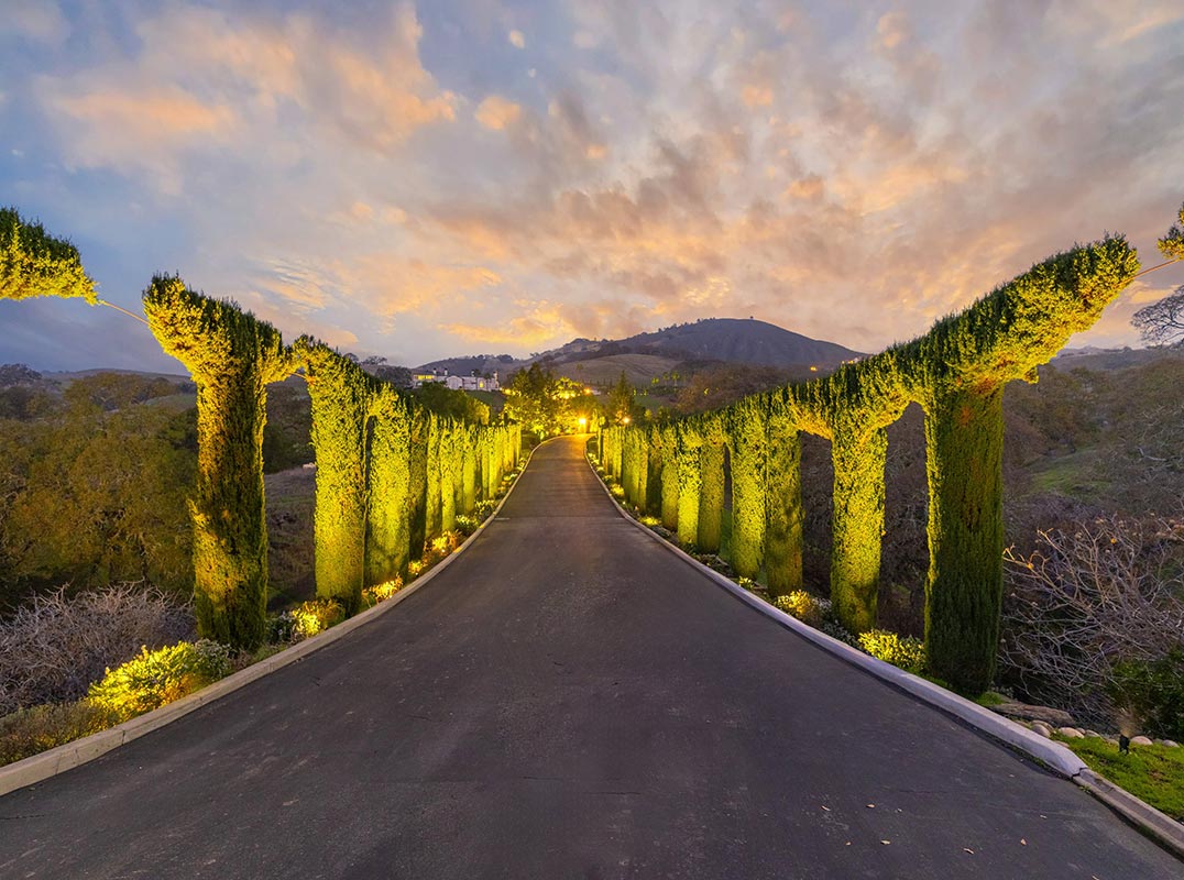 Inside, expansive rooms support refined living and elevated entertaining, with multiple viewpoints capturing the surrounding hillsides. Signature amenities elevate the experience, including a 20-car showcase car barn, an inviting club room and a temperature-controlled wine cellar—ideal for collectors and connoisseurs.