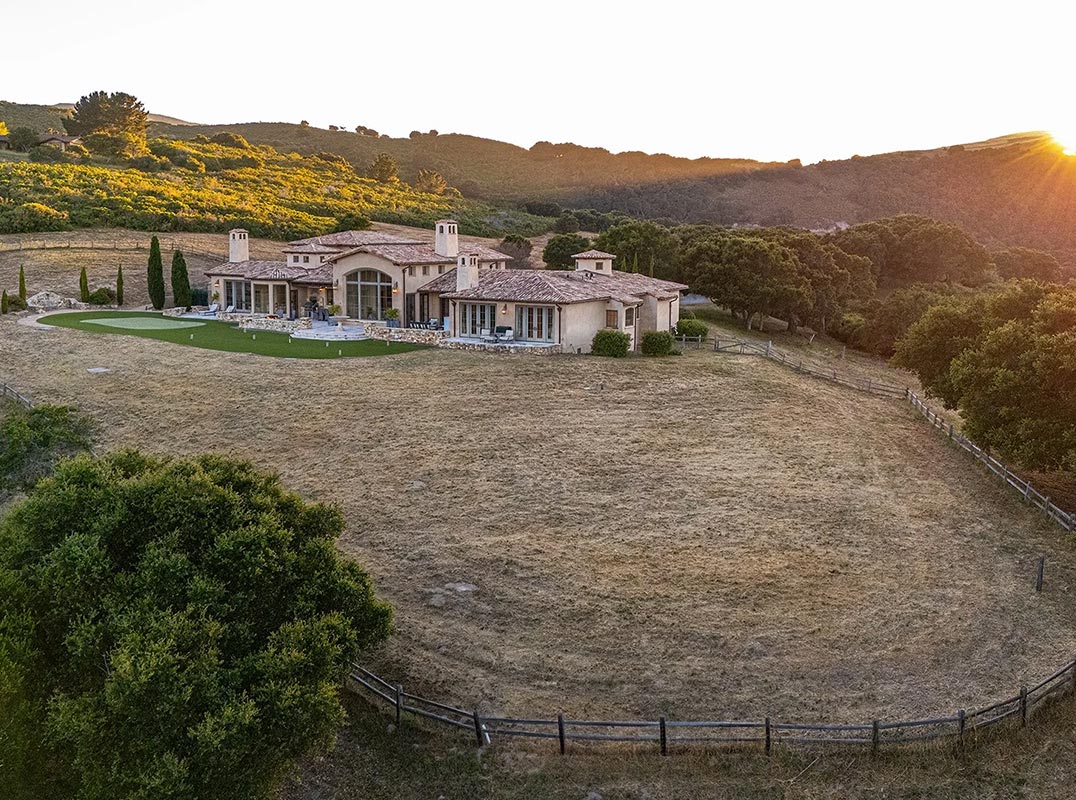 This predominantly single-story estate stands on its own private, level ridge-top on 49+ acres and is perfectly situated to maximize spectacular, vast blue sky, and unique valley and mountain views within the Santa Lucia Preserve. The premier Preserve property is accessed via a long picturesque driveway and includes an expansive, welcoming front courtyard, extensive terraces for seamless indoor/outdoor entertaining, fully-fenced level yard with putting green and croquet court, and a charming iron-fence enclosed garden with mature citrus trees and separate dog-run. The estate is zoned as full-time equestrian and has room to include a barn, guest house, caretakers cottage and infinity edge pool, if desired. Located only two miles from the Preserve front gate within a most desirable microclimate, this one-of-a-kind property is an oasis of elegance and privacy with easy access to shopping, dining, schools, healthcare, and airport, as well as Carmel-by-the-Sea with all it’s charm and amenities.