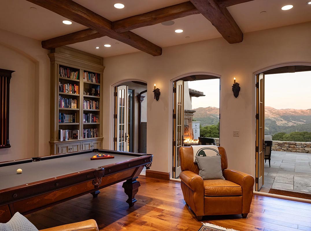 This beautifully designed estate is filled with natural light and incredible views from every room comprising the 5 bedroom 4 1/2 bath home. With a floor plan optimized for all stages of life and rarely found within the Preserve, the main living areas, 4 bedrooms, and 3 car garage are all on one level. A private circular staircase leads to a grand guest suite with quaint bunk room and views overlooking the courtyard and Carmel Valley mountains. This exquisitely detailed home includes breath-taking valley views upon entering through the gracious foyer, with formal living and dining rooms, family room, breakfast room, open chef’s dream kitchen, office, billiards room, and mud room. The master bedroom is a separate wing with a sitting room, fireplace, large closet, and bathroom with views from the shower and jacuzzi. The master bedroom and sitting rooms have French doors opening to their own patio overlooking the valley. Every detail has been meticulously attended to including custom walnut entry and garage doors, antique clay-tiled roof, exterior hand-crafted Carmel Stone walls and imported limestone terraces, two custom outdoor fire-pits, as well as custom fountains in the front courtyard and back terrace. Interior finishes include walnut floors by First, Last and Always, antique Jan de Luz fireplaces, integral plaster walls with hand-formed vaulted ceilings and archways, hand-hewn beams, custom woodwork by Don Whitaker at the Golden Hammer, custom built-ins and doors in every room hand-painted and finished by Scott Coulter, Rocky Mountain hardware throughout, and Lara Lee iron sconces and chandeliers. With solar power and multi-zoned air conditioning and heating, every detail has been considered and included.