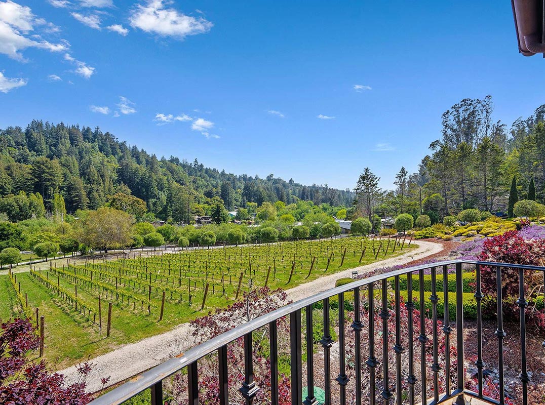 Nestled in a sun-kissed meadow and surrounded by over 21 acres of natural beauty, this magnificent gated Tuscan-inspired estate has never been offered for sale—until now. Thoughtfully designed and custom built, the property includes 1.5 acres of Pinot Noir grapes, offering a unique opportunity to own a private vineyard just 10 minutes from both Santa Cruz and Hwy 17 for easy access to Silicon Valley.