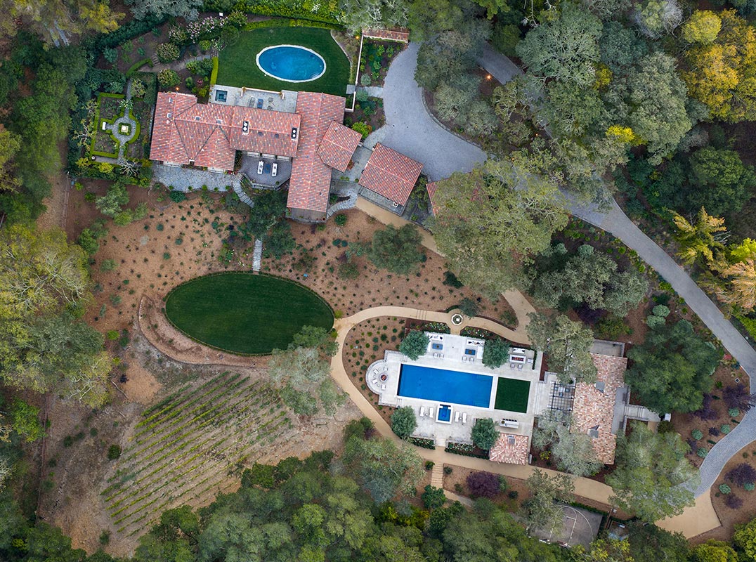 One of Woodside’s premier estates, this property offers exceptional scale, quality, and lifestyle with a classically styled main home and a brand-new guest house built with authentic European detail. The main home is luxuriously appointed across two levels, with nearly every room opening to the outdoors. A state-of-the-art theatre and a temperature-controlled wine cellar are just two of many standout features. The newly completed guest house showcases roof tiles handmade in Provence and Genoise eaves, paired with modern seismic construction and smart home technology. Designed for entertaining, the guest house opens to a new saltwater pool and spa, of early 60 feet in length, and expansive limestone terrace with sound system, full outdoor kitchen, pizza oven, and easy catering access. A 310-vine Cabernet vineyard anchors the south-facing gardens, while heritage olive trees and oaks, a fragrant parterre rose garden, bountiful orchard, and raised vegetable beds enhance the estate’s agrarian beauty. The result is a property where timeless elegance and refined European living are masterfully expressed in an extraordinary private setting of more than 3 acres with western hill views.
