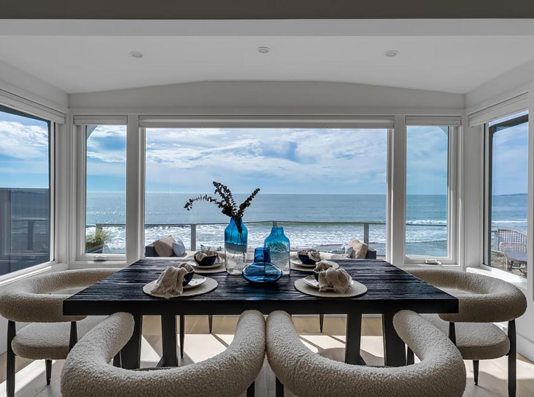Let's start with the obvious: whoever designed this house refused to waste a single ocean view. Every room was thoughtfully positioned to capture the water. Sitting in the living room? Ocean. Cooking in the kitchen? Ocean. Gathered around the dining table? Still ocean. Large windows pull the coastline into the home so the views are part of everyday life. The kitchen & dining area may have the best seats in the house. Cooking dinner here means watching the waves roll in while the sky slowly shifts toward sunset. High-end appliances, a wine fridge & thoughtful upgrades make the space as functional as it is beautiful. Step out onto the spacious deck & the view opens up even more. It's perfect for morning coffee, evening wine, or simply letting the sound of the ocean do its thing. When you're ready for the sand, private steps lead down toward the beach. The Point is just down the street ready for some surf. Another rare bonus: after nearly two years of work, Coastal Commission approval has been secured to re-stack the shoreline rocks, something many coastal homes never get. And yes sunsets here are exactly as good as you're hoping they are.