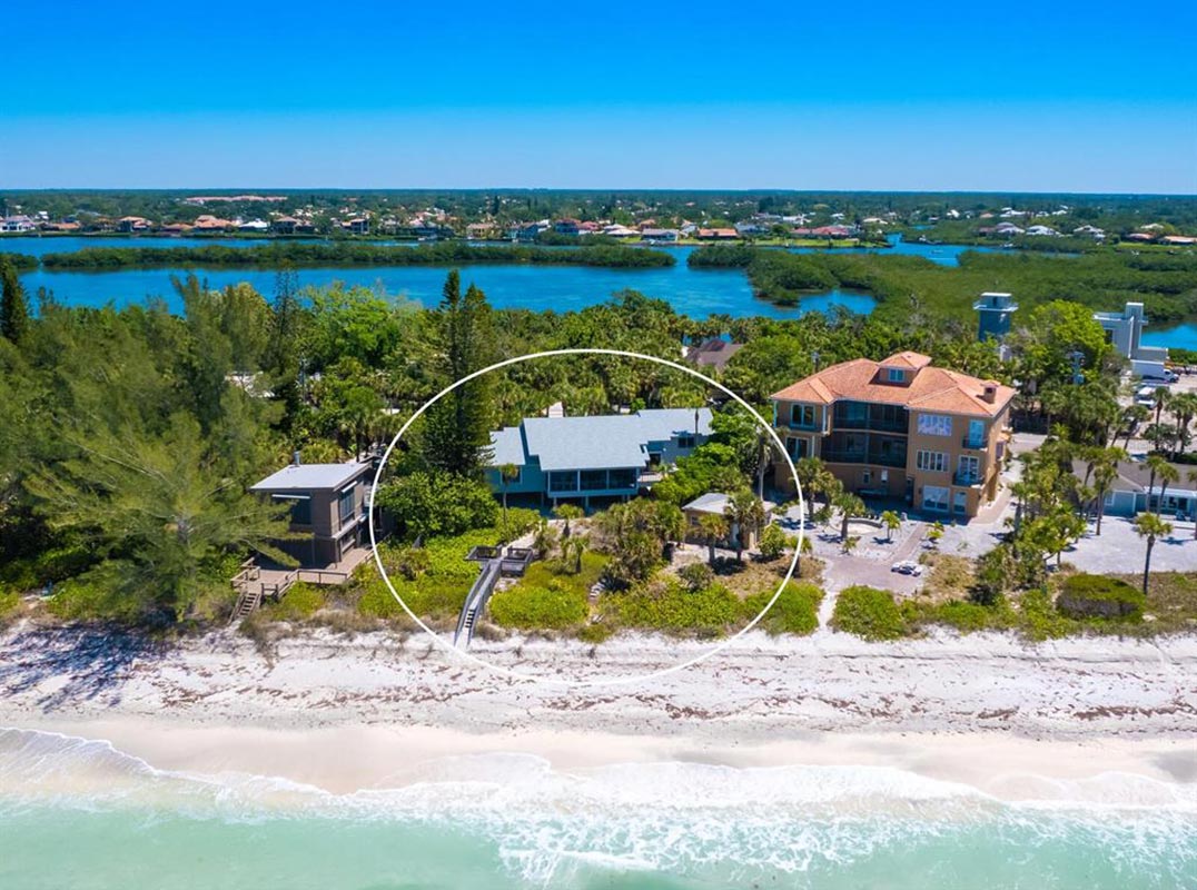 Two-car garage. Expansive outdoor under-home storage area, perfect for a shaded sitting area, housing kayaks, surfboards, boats and other large water toys. Follow the walkway to the beachfront deck to stairs that lead to the sand and water. You’ll feel as though you are on an island in the Caribbean. If you dream of living on the beach with your toes in the sand, collecting shells by the water’s edge, watching dolphins at play and being mesmerized by spectacular sunsets and stars each night, this may be your opportunity to own a gulf front beach house on one of the most low-key, exclusive barrier islands on Florida’s west coast. Includes three-foot deeded access easement across to the bay, and reciprocal 3-foot beach access easement for the bayside neighbor. Casey Key is an 8-mile island with meandering roads and less than 400 single-family homes. Gulf front residents own their beaches to the mean high-water line and new construction is limited to single-family homes. Located south of the historic Blackburn Point swing bridge which offers easy access to this magical island. Golf, tennis, upscale restaurants, shopping, medical facilities and schools are nearby, including the nationally acclaimed Pine View School. Culturally rich downtown Sarasota’s restaurants, theatre, ballet, opera, museums, galleries and shopping are just 30 minutes by car over the north bridge and Venice Island’s charming downtown is only 15 minutes by car over the south bridge. Convenient access to Interstate 75, and the area's private and commercial airports.