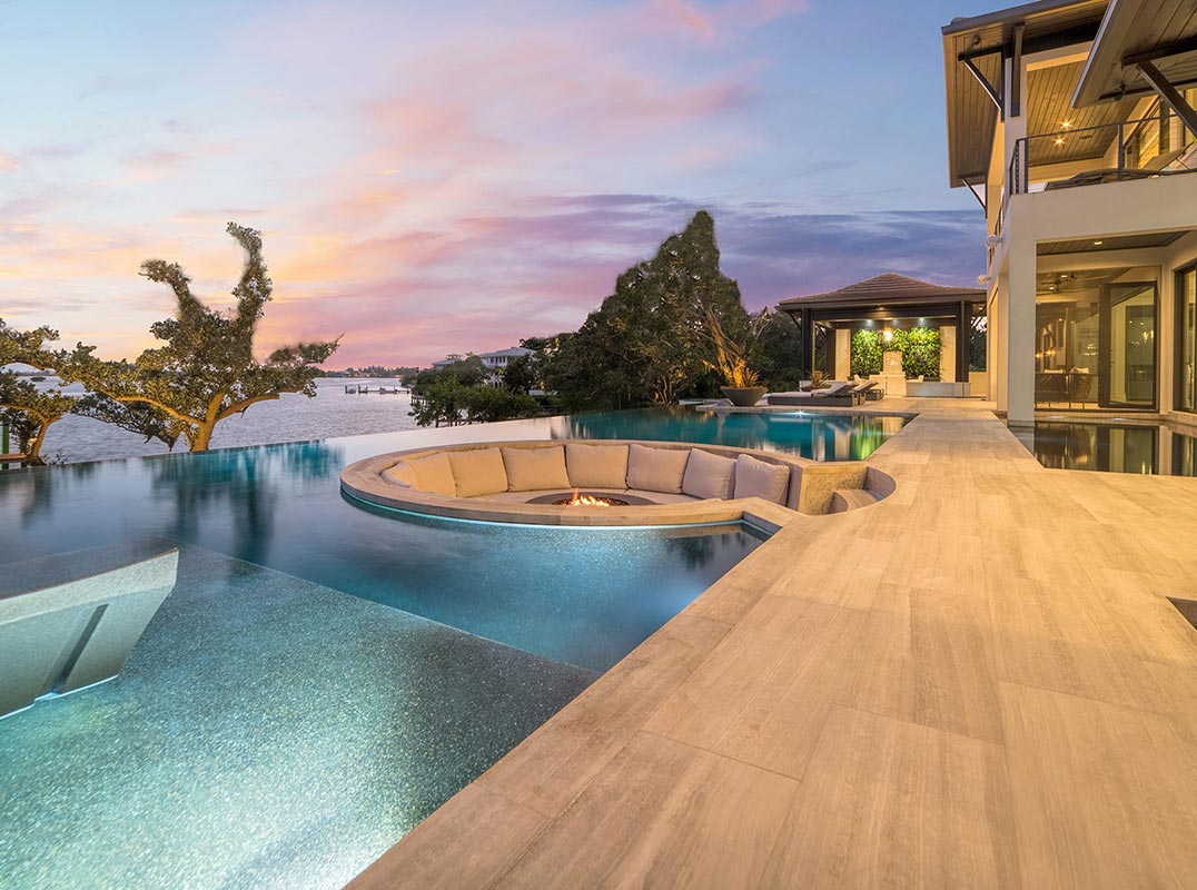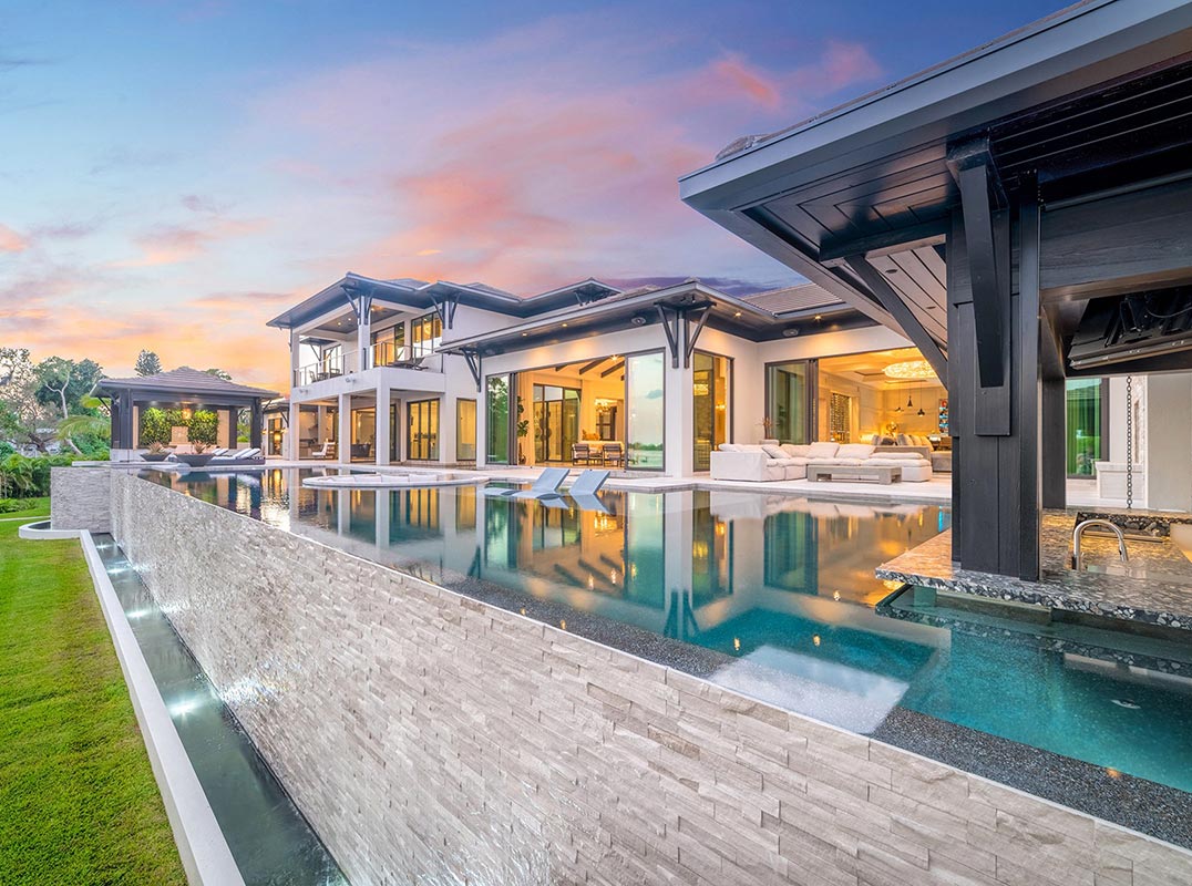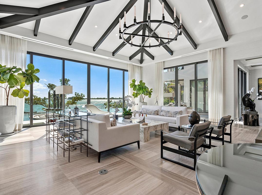 Relax and take in the positive energy of Lotus-style living in this one-of-a-kind Balinese-inspired resort compound on north end of the world-famous Siesta Key. Nothing is needed to begin your Zen journey as the property comes completely furnished down to dishes, silverware and a Buddha living wall. The coexistence of indoor and outdoor space blends over 8,000 square feet of indoor space with thousands of square feet of patio and pool area. An outdoor oasis offering an infinity-edge pool with a swim-up bar, a sunken fire pit lounge within the pool, a spa, an outdoor kitchen, a dining pavilion with a living plant wall and an open-air living room with a fireplace. A koi pond with stunning built-in footbridges stretches nearly the entire length of the home, enhancing the serene ambiance of the outdoor space. Spanning over an acre with more than 700 feet of waterfront, the property is a masterpiece of luxury, designed for effortless relaxed living or island-style entertaining. A custom-designed driveway welcomes you to a breathtaking entrance, where waterfalls and fire features set the tone for the experience that awaits inside. Expansive walls of glass, seamless indoor-outdoor transitions, and rich wood and stone flooring throughout create a striking, cohesive aesthetic. The thoughtfully designed interior boasts multiple living spaces, including a game room, home theater, fitness room, meditation space and an impressive 8-plus-car garage. For the waterfront enthusiast, a well-equipped boat dock, a separate waterfront garage, and a paddleboard/canoe launch provide unparalleled access to pristine waters. This exceptional residence also features a newer seawall, full-house generator, Crestron home automation, a three-stop elevator and a whole-house reverse-osmosis water filtration system, ensuring convenience and peace of mind. An island paradise, this estate offers unmatched privacy while remaining just moments from Sarasota’s vibrant shopping, dining and world-renowned cultural attractions. Don’t miss this rare opportunity to own a move-in-ready masterpiece on Siesta Key – home to the #1 beach in the USA (Tripadvisor).