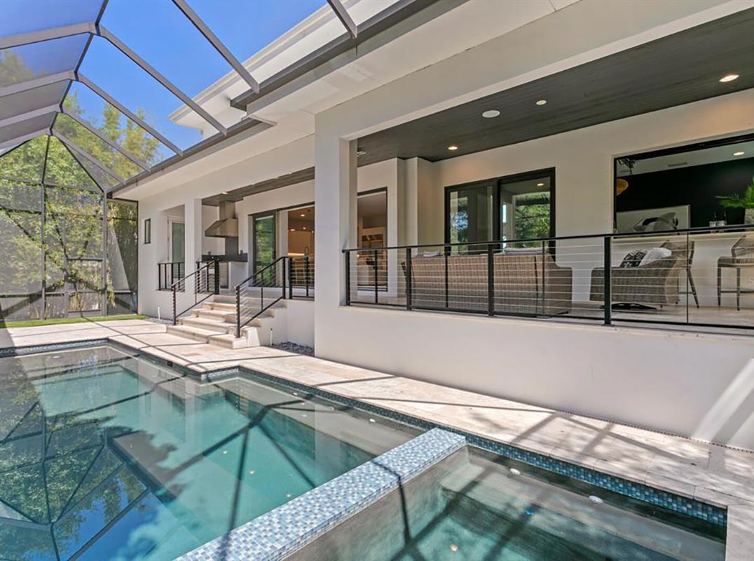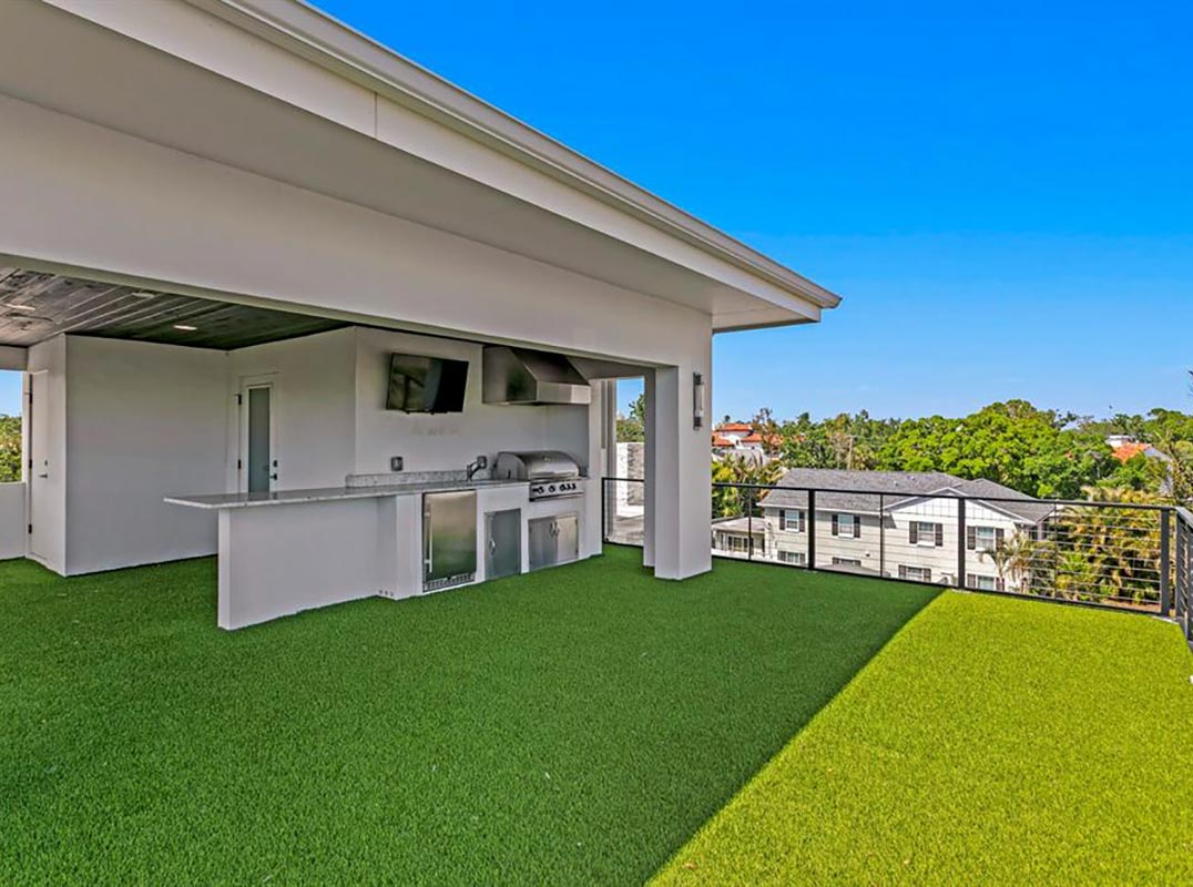 Experience elevated modern living in this 2019-built residence by TB Homes, ideally situated on Davis Islands—one of Tampa’s most sought-after neighborhoods. Offering 5,045 square feet of living space this home was constructed to the latest building codes and features elevated living, superior block construction and impact-rated windows and doors. The main level welcomes you with a grand open-air foyer, floor-to-ceiling glass, and a cable-railed staircase. The expansive great room showcases a dual-sided 60-inch electric fireplace and retractable sliders. Entertain effortlessly with a bonus room featuring a roll-up glass garage door-style pass-through from the full wet bar to outdoor bar-height seating, along with a sleek designer kitchen with quartz waterfall island, marble herringbone backsplash, Sub-Zero and Wolf appliances, butler’s pantry, spacious walk-in storage pantry and wine bar. A private guest suite completes the first floor. A 4-stop elevator provides seamless access to all levels, including a private rooftop deck. Upstairs, the second floor hosts a luxurious owner’s retreat with morning bar, spa-style marble bath with soaking tub and dual vanities, and a 200+ sq ft custom walk-in closet. Three additional bedrooms, a media room, and a spacious laundry room round out this level. The third-floor rooftop terrace features a dedicated entertaining retreat with both open-air and covered lounge areas, artificial turf, an outdoor kitchen, counter seating, half bath and panoramic views of the Seaplane Basin, Davis Island Yacht Club, and Executive Airport. Outside, the heated saltwater pool, spa, sun shelf, travertine deck, and cypress-ceiling lanai with summer kitchen and pool bath create a true backyard oasis. Additional highlights include new pool equipment and low-maintenance turf. Additional features include EV charging station, Control 4 smart home system, rich hardwood flooring, level 5 smooth drywall, solid core doors, high-gloss cabinetry, and designer tile selections. Situated in one of Tampa’s most exclusive waterfront communities, residents enjoy an array of recreational options, including a sailing and yacht club, tennis complex, community pools, and Davis Islands Village. This prime location offers A-rated schools, proximity to championship sports venues, and the world-class shopping, dining, and entertainment of Water Street.