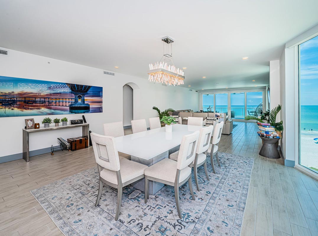 AMAZING CONTEMPORARY LUXURY with spectacular Gulf and Beach views! This 4 bedroom 3 ½ bath, private 2-car garage, upper-level residence features a brilliant chef’s kitchen, plush full baths, large bedrooms and living spaces, and a huge 570 sqft covered beachfront balcony ideal for entertaining.