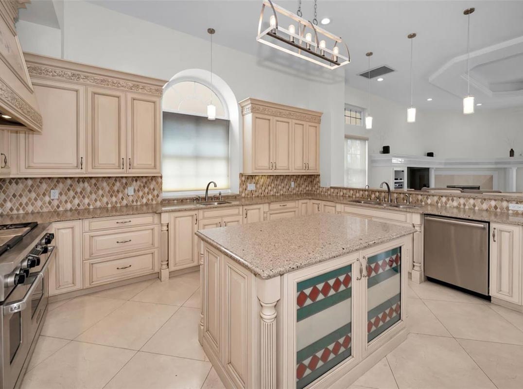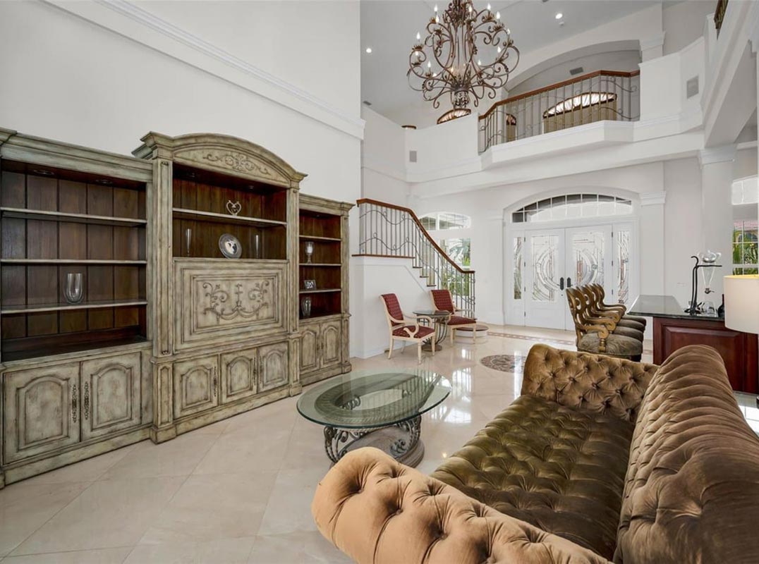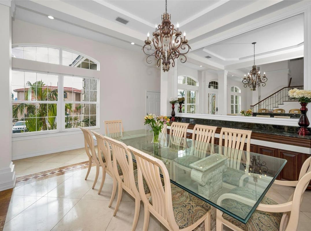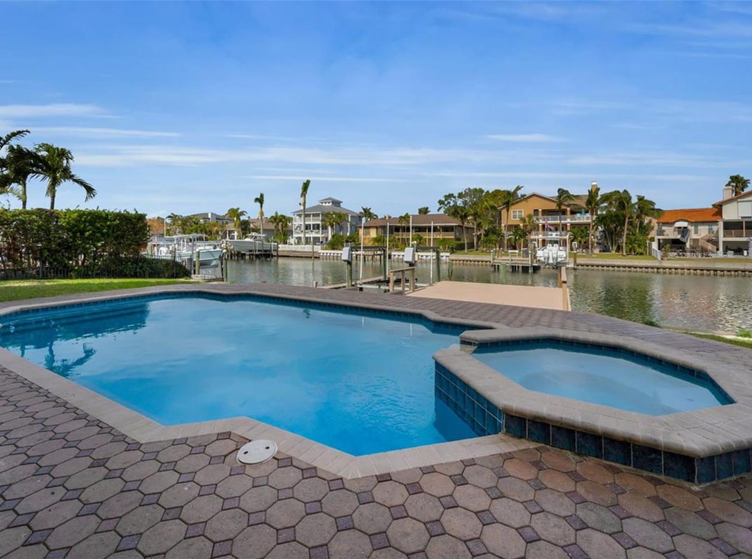 THIS IMPRESSIVE 6 BEDROOM, 4 ½ BATH COASTAL ESTATE OFFERS 9512 SQFT UNDER ROOF AND BEAUTIFUL PROTECTED BOATING WATER WITH RAPID ACCESS TO THE GULF OF MEXICO. A grand, pavered circular driveway introduces a majestic and inviting covered entry. Step through to the wonderful open foyer and superb living room with towering 23ft-high ceilings and lavish custom wood/granite multi-level wet bar with wine/beverage chilling center. This exceptional luxury waterfront home features remarkable tray & custom layered ceilings, extensive built-ins/crown trimwork, elegant 24-inch polished marble tile floors, and 12ft-high ceilings in the 1st living level. An exquisite formal dining contains a beautiful built-in serving buffet with matching corner curio cabinets. The brilliant gourmet kitchen boasts splendid ogee-edge granite counters, exceptional custom wood cabinetry, beautiful designer tile backsplash, a rich island prep center, built-on refrigeration, Wolf gas cooking, and a large multi-level breakfast bar. Spacious family room enjoys a built-in entertainment center with fireplace, overlooks the water, and opens to the main 37ft-wide, 450sqft waterfront balcony -- perfect for family and friends. Retire to the inspiring owner's suite with 2 walk-in closet systems and a large waterfront sitting area that includes a built-in mini office and terrific morning bar with beverage center. Resplendent owner's bath is a pampering retreat, with custom cabinetry, granite surfaces, 2 generous vanities, a dedicated cosmetics center, a jetted spa tub encased in granite/wood, and a dazzling walk-in marble rainshower with body sprays. Additional 1st level bedroom suite has waterviews and a plush full bath. Upstairs, discover 4 well-sized bedrooms, 2 of which overlook the water and share a 150sqft deck with commanding views of the waterfront. Upper level provides a built-in lofted lounging area and fabulous interior views of the home. Step out to the 1125sqft covered lower level deck overlooking the pool/waterfront. This huge deck has 4 distinct seating areas, including a substantial multi-level granite bar & dining center with outdoor kitchen, SS gas cooking and custom brick oven. Oversized lounging deck encircles the pool/spa. Superior construction, massive garage, excellent laundry facility, composite dual entry boat dock with lift, and many, many extras. An incredible waterfront value in a terrific boating community! Buyer to verify all dimensions. Flood insurance is $1287 per year and assumable.