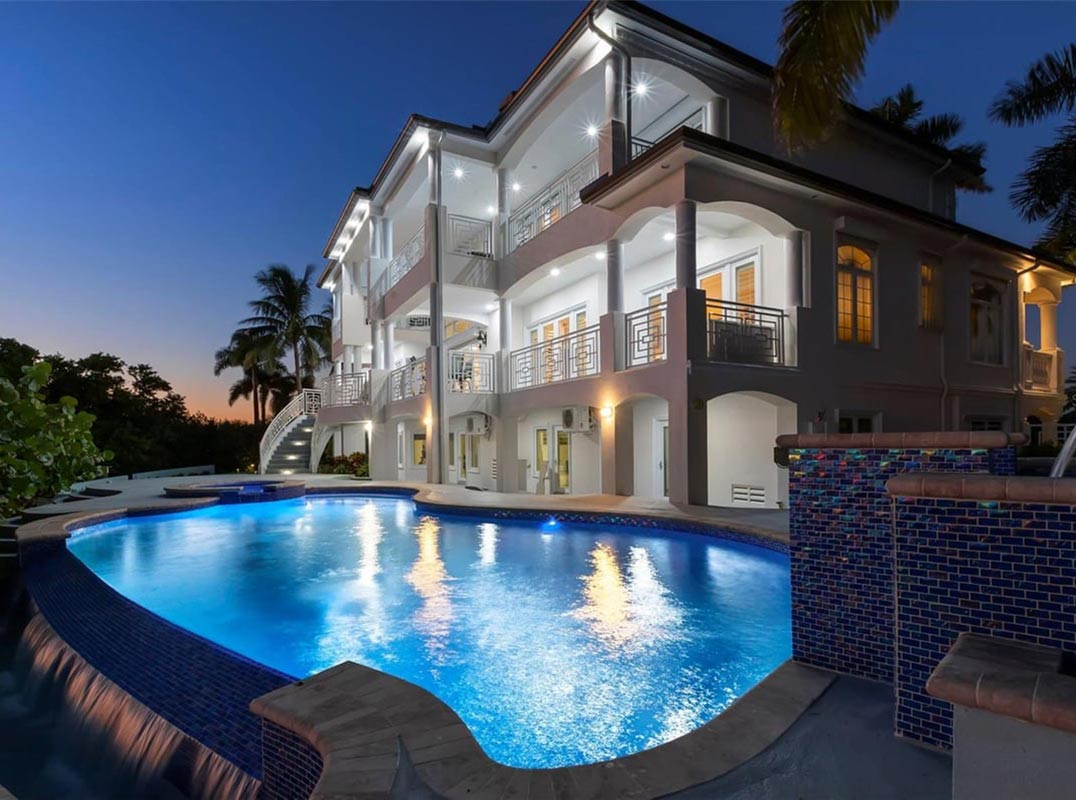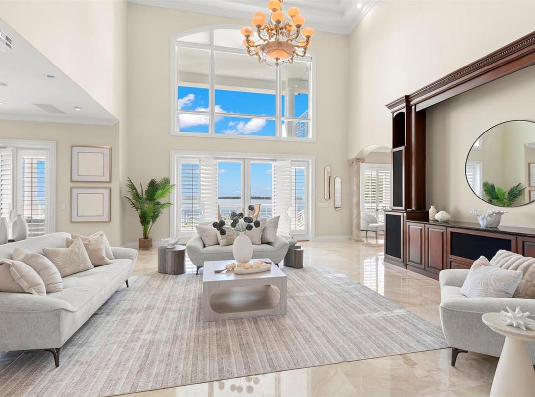 There are homes you live in and homes that elevate the way you live. This breathtaking waterfront estate does just that! Welcome to an extraordinary waterfront estate in the prestigious, guard-gated community of Bayway Isles. As you step through the stunning leaded glass double doors, your eyes are immediately drawn to the breathtaking open-water views. Perfectly positioned on an expansive point lot with 135 feet of waterfront, this residence captures spectacular sunsets and embodies the best of Florida luxury living. Spanning 7,114 square feet of living space with an impressive 3800 SF of fabulous balconies to enjoy outdoor living, this 5-bedroom, 5.5-bath home was designed with timeless elegance, impeccable craftsmanship, and effortless indoor-outdoor flow. A private elevator servicing all levels immediately sets this residence apart, offering both convenience and luxury. The home has recently undergone substantial upgrades, including a brand new charcoal-colored metal roof with lifetime warranty, freshly painted exterior, and a fully updated kitchen with modern white cabinetry and top-of-the-line stainless steel appliances. The main living level features stunning marble flooring, a spacious great room with amazing water views, a custom wet bar, theater screen,a formal waterfront dining room and a convenient powder bath. Also on this level is a generous guest suite with en-suite bath, a walk-in pantry, and a fabulous office with built-ins. The top floor is dedicated to four bedroom suites arranged in a split plan, providing the generous primary suite its own private wing. The primary retreat showcases expansive water views, plantation shutters, a spacious custom walk-in closet with center island, and a newly remodeled bath with dual vanities, jacuzzi tub, walk-in shower, and abundant cabinetry. The refinished hardwood floors extend throughout the upper level, where all bedrooms are generously sized and filled with natural light. Exceptional build quality of this all block constructed residence includes 6" poured concrete floors, hurricane shutters, a whole-house generator, and the split four-car garage features epoxy flooring. Also downstairs you have a private gym The resort-style backyard has been thoughtfully enhanced with a beautifully refurbished infinity-edge pool and deck, surrounded by lush tropical landscaping, and programmable lighting for year-round enjoyment. A brand-new dock with 16,000 lb boat lift, and new generator further elevate the home's appeal. (Lastly there is a low transferrable flood insurance (under $2,000 annually) and 1600 SF of additional bonus/storage area. Ideally located just 10 minutes from vibrant Downtown St. Petersburg and 30 minutes to Tampa, with no bridges to open water, this exceptional estate offers a truly rare combination of luxury, lifestyle, and location.