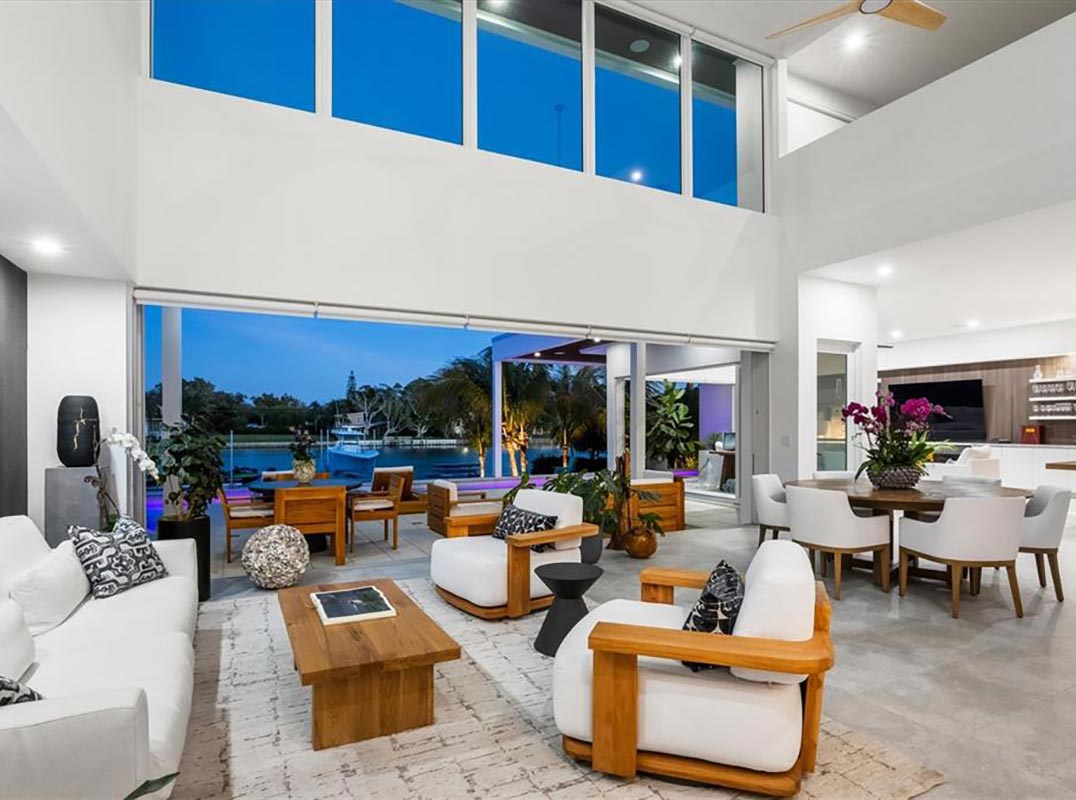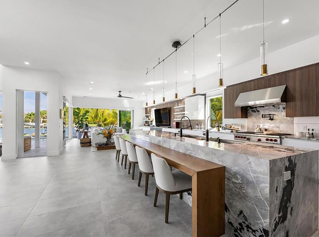 Anchored in one of Sarasota’s most sought-after deepwater settings, 3631 San Remo Terrace is a modern sanctuary where clean lines meet the warmth of natural textures, creating a home that feels both timeless and alive. Completed in 2021 by award-winning designer Stephen Chung and thoughtfully refined by the current owner, the residence reflects resilience and intention, standing strong through recent storms while maintaining an atmosphere of calm and connection to its surroundings. Updated in fall of 2025, the home now features new railings and window trim to complement the wood flooring, linear drains in the paver pool deck, and a fully equipped outdoor kitchen, enhancing its functionality and contemporary appeal. Within 4,750 square feet of living space, complemented by nearly 3,000 square feet of terraces, pool, and patio, every detail is designed to balance sophistication with ease. The kitchen centers the home with a sculptural marble island and professional-grade Sub-Zero and Wolf appliances, accented by soft lighting and sunlight that filters through walls of glass. The great room’s stone fireplace, open shelving, and expansive sliders invite an effortless flow to the outdoors, while the adjoining dining space rises with two-story ceilings and a dramatic wall of windows. A temperature-controlled wine room with space for 1,800 bottles adds both artistry and function. The primary suite is its own retreat, defined by quiet luxury and seamless connections to nature. Sliders open to a private courtyard with spa and sauna on one side and the pool terrace on the other. Inside, illuminated details, a bespoke walk-in closet, and a spa-like bath with an expansive vanity and glass-enclosed shower emphasize comfort and serenity. The second floor carries the same sense of air and light, with three guest suites, one currently a gym, each opening to a full-length terrace overlooking the water. A loft like office, a custom laundry room with a beverage cooler and sink, and an open gallery walkway further showcase the home’s thoughtful design. Outside, the saltwater pool with a glass wall becomes a focal point for relaxation, while the expansive dock offers a 20,000-pound lift, two low-profile lifts, and a floating platform for kayaks and paddleboards—providing instant access to Sarasota Bay and Big Pass. Even the garage has been elevated, with epoxy floors, a BendPak lift for a fourth car, and custom storage for boating and fishing gear. Every system has been considered, including a fully integrated smart-home platform with programmable lighting and shades, whole-house audio, Apple TVs, a generator, and strong WiFi indoors and out. San Remo Estates is at the core of Sarasota, just before the north bridge to Siesta Key, and minutes to Downtown Sarasota and Southside Village. 3631 San Remo Terrace is a unique property, where every detail speaks to the timelessness and practicality of the Sarasota School of Architecture.