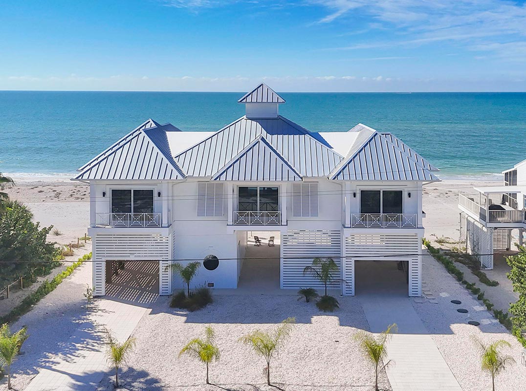 The exterior is equally impressive, featuring a welcoming foyer entry, low-maintenance composite trim and decking, Hardie board siding, hurricane-rated impact windows and doors with Turtle Glass, an elevator and a 3+ car carport with golf cart parking along with additional outdoor living space steps from the beach. With beachfront living on the Gulf, boating access from your backyard, no rental restrictions and every detail meticulously executed, this remarkable home offers the very best of island living on Florida’s Best Coast.