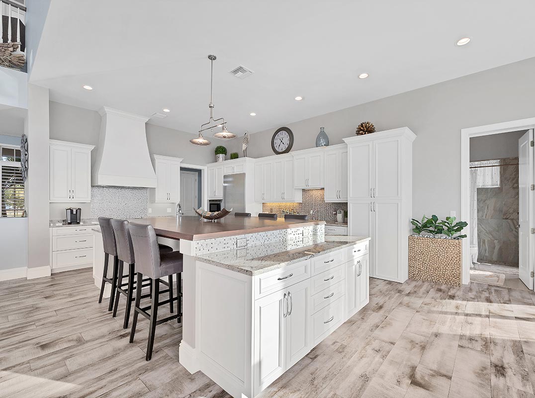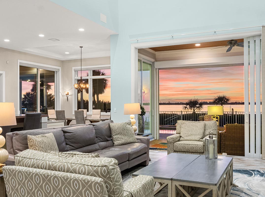 Offered fully furnished, this property is truly move-in ready. Ceramic tile flows throughout, while the gourmet kitchen is equipped with a huge walk in pantry, top-of-the-line Thermador appliances and massive 7 by 8 ft island with plenty of space for gathering and entertaining. Every room, including all bedrooms, enjoys expansive water views, creating a constant connection to the serene surroundings. The primary suite is a private retreat with his-and-hers walk-in closets and a spa-like bath featuring a luxurious garden tub. Upstairs, an en-suite bedroom opens to a private balcony—perfect for morning coffee or evening sunsets.