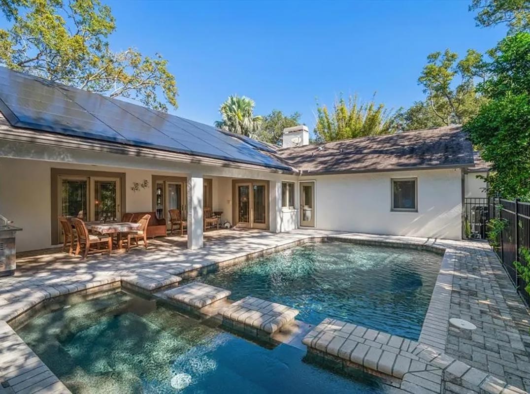 Resort-style Dunedin home with peaceful garden paths, a koi pond, private fire pit and stunning pool. Upgrades include Pella windows, Tesla solar with battery backup, two primary suites and 3-car garage. Minutes to downtown, the Causeway and Honeymoon Island.