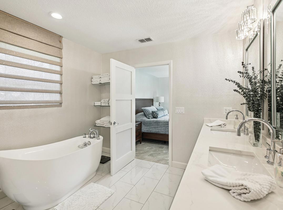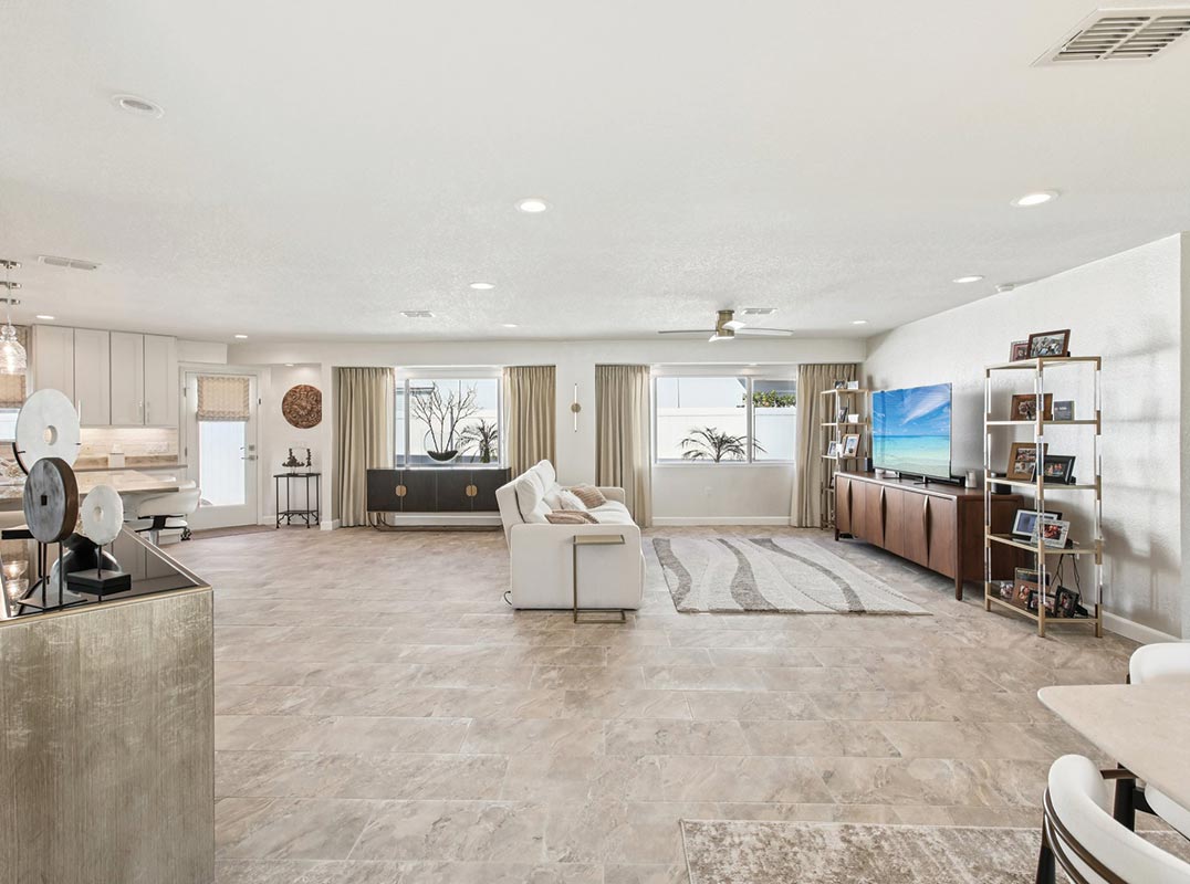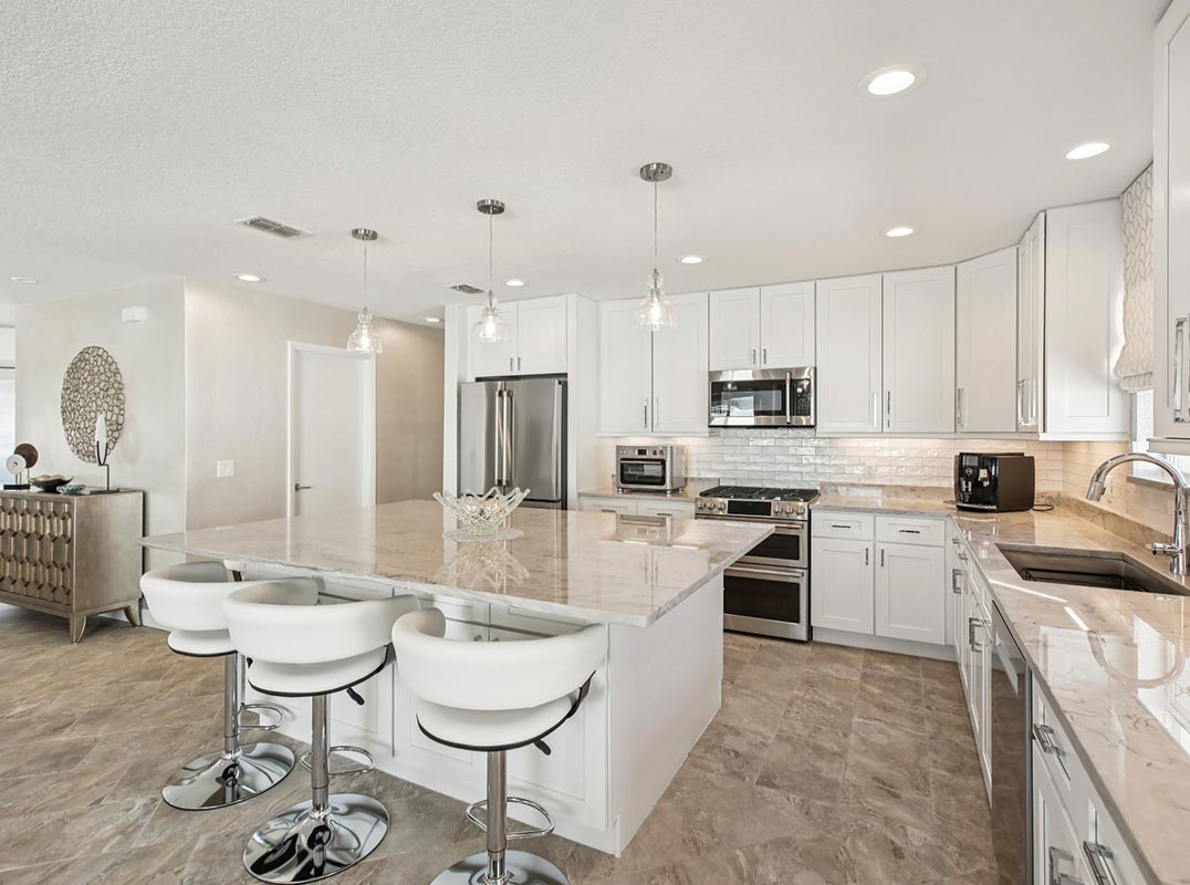 You will be delighted with the impeccable condition of this beautifully remodeled home with 4 bedrooms, 3 full baths + 1/1 guest house and as assumable Flood Insurance Policy! Light and bright throughout, this home has been upgraded with the utmost attention to detail and quality materials that include new porcelain tile flooring throughout, custom interior doors, new kitchen and bath cabinetry, bespoke natural quartzite countertops, designer paint finishes.