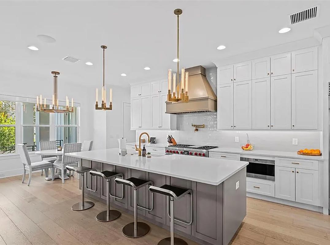 Thoughtfully designed for both everyday comfort and elevated entertaining, the home features a private office/study, dedicated gym, first-floor playroom or flex space, spacious media room with kitchenette, formal dining room, expansive great room, eat-in chef’s kitchen with oversized island, walk-in pantry, and a functional mudroom/drop zone.
