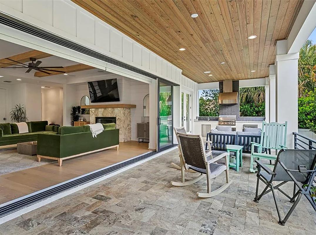The luxurious second level includes a generous primary suite with spa-inspired bath, multiple walk-in closets with custom built-ins, loft space, and well-appointed secondary bedroom suites, creating ideal separation and flexibility for family or guests. Custom closet systems are installed throughout both the first and second floors. A shaft for a future elevator extends from base grade through both floors for long-term convenience. The fully enclosed backyard is a private resort featuring a saltwater heated pool and spa, silver travertine decking, low-maintenance turf green space, a mosquito misting system, and a covered lanai with outdoor kitchen—perfect for year-round Florida living. Built with quality and durability in mind, construction highlights include two-story concrete block construction, Hardie board concrete siding, brick accents, impact-rated windows and doors, and elevated design standards throughout. Interior finishes showcase wide-plank oak flooring, smooth drywall, detailed millwork, custom cabinetry, Sub-Zero/Wolf appliances, and designer marble and porcelain tile in all wet areas. Modern convenience and technology are fully integrated with whole-house WiFi, a comprehensive AV system with distributed speakers throughout the home, a whole house water filtration system, and a full-house generator for peace of mind and uninterrupted comfort.