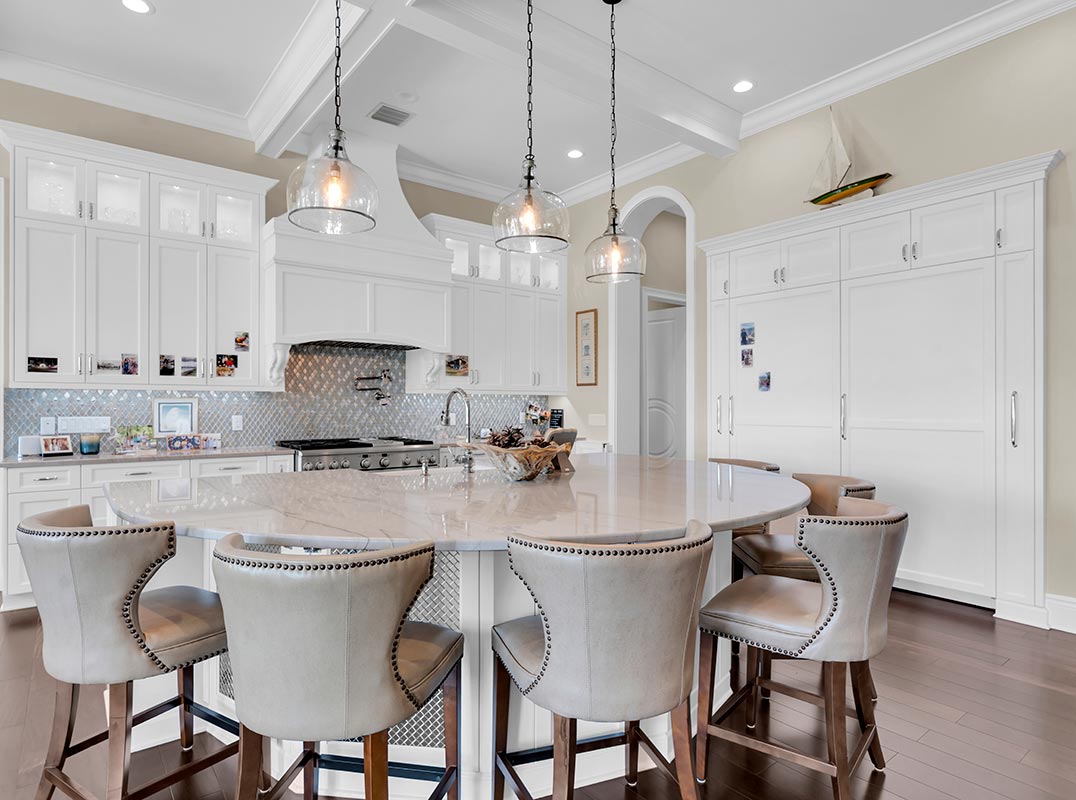 This newer home (6yrs) blends, charm and modern comfort, with the light filled rooms, open floor plan features begin upon entering by way of the Porte-cochere through custom designed double entry doors to a foyer with 20 foot soaring ceiling & retractable chandelier with piano alcove and light-filled conversation room featuring a fireplace to start the presentation of an absolutely stunning home. Craftsmanship is showcased throughout this home, from the millwork around all door openings, baseboards, coffered ceilings, to the 10 foot designer highlighted doors to each room, custom cabinetry in the kitchen, butler's pantry, bathrooms, game room and both full sized and equipped laundry rooms. The combined family room, breakfast room and kitchen features coffered ceilings, spectacular views of the covered dock with lift, fire pit & seating overlooking the approximately 2600 acre Lake Tarpon as well as the sparkling open pool area featuring an outstanding gourmet outdoor kitchen for all those year round outdoor get togethers.