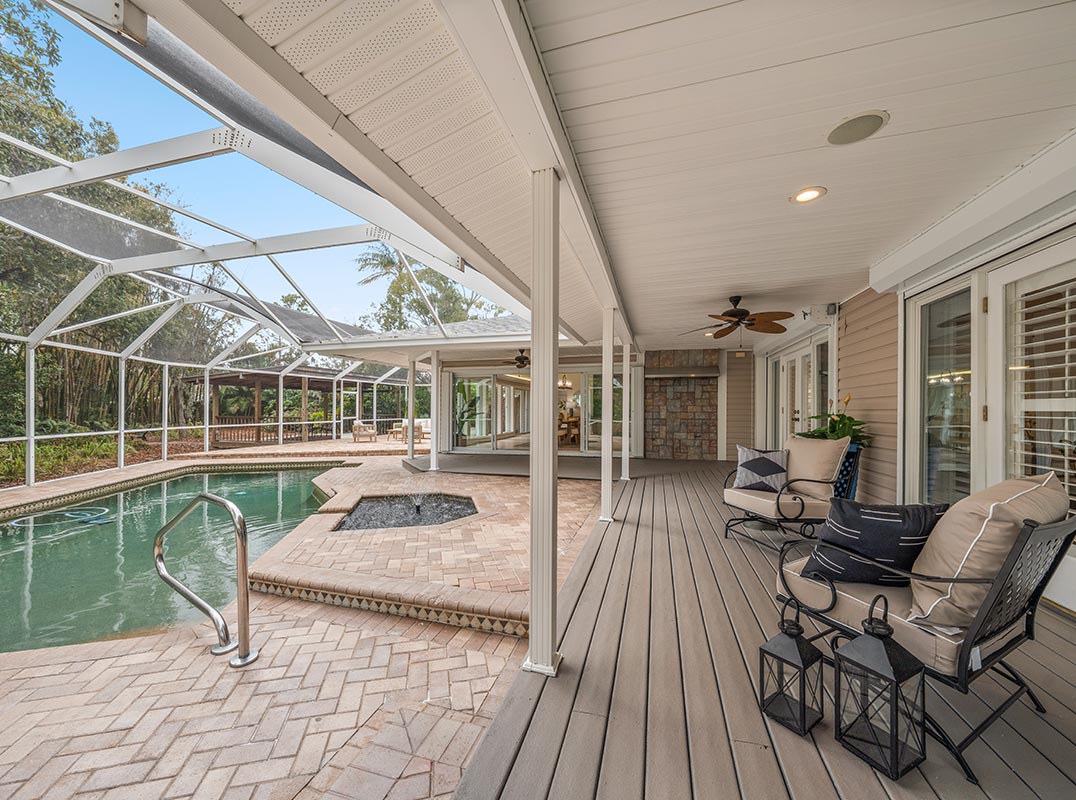Outdoors, multiple venues await, including a covered deck with ceiling fans, a firepit, fountain and tranquil creek views. The luxurious downstairs primary suite boasts a walk-in closet with custom built-ins, dual-sink vanity, jetted tub, walk-in shower, and skylights that fill the space with natural light. Upstairs, additional bedrooms are thoughtfully designed with custom closets, plantation shutters, and a renovated hall bath, including a Jack-and-Jill layout for two bedrooms. Other highlights include a mudroom/laundry off the garage, extra RV parking, a garden shed, and move-in ready upgrades throughout. Just a short golf cart ride to downtown Dunedin and minutes to beaches, the Pinellas Trail, shopping, and dining, this home is Florida living at its finest.
