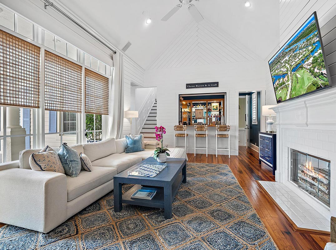 Designed to capture the essence of Key West living, this home blends timeless coastal charm with modern luxury. Step onto the expansive 11' wide porches, perfect for enjoying the tropical surroundings. Additional home features include hurricane impact windows and doors for peace of mind, a private elevator, and exquisite details such as Heart Pine Brazilian wood flooring and custom millwork throughout. The gourmet kitchen boasts Viking and Sub-Zero appliances, while the stunning bar area with built-in wine storage invites effortless entertaining. Cozy up by one of the two fireplaces, or retreat to the spacious primary suite, complete with a serene sitting area and luxurious en-suite primary bath.