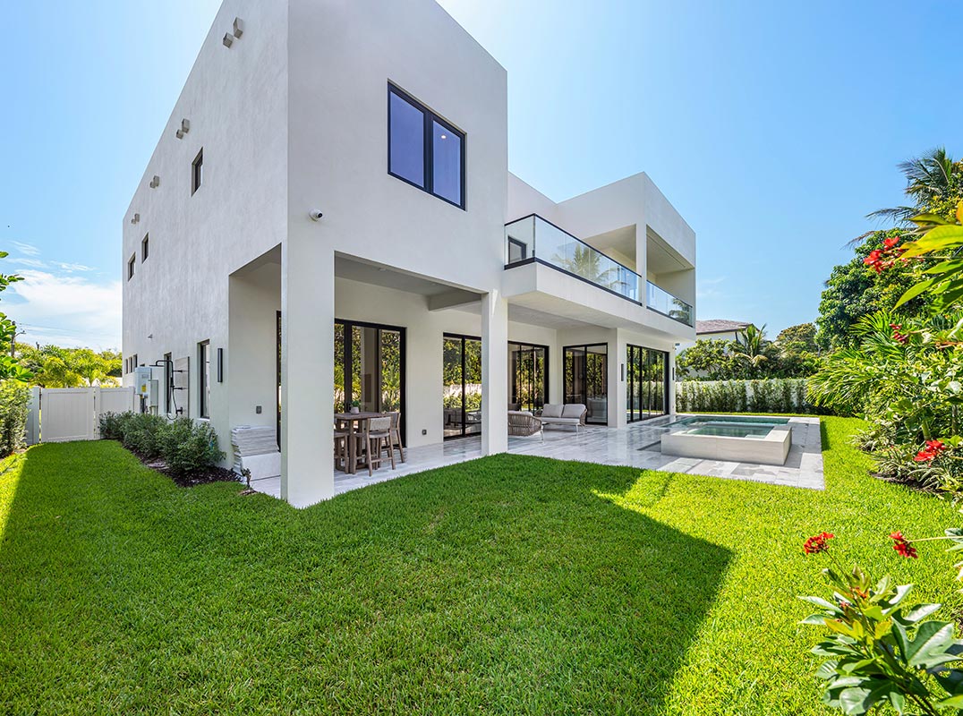 Welcome to 1031 NE 3rd Avenue, a newly constructed residence in the highly sought-after Boca Villas neighborhood, crafted by Skymar Custom Homes. This modern home sits on a 108' x 80' lot and offers a seamless blend of design, function, and location.The main level features an open-concept layout with a chef's kitchen highlighted by a 9.5' x 11' island, custom two-tone cabinetry, paneled Thermador column refrigerator and freezer, dual-gas and electric range, wall speed oven, built-in coffee maker, and walk-in pantry with secondary laundry. Living and dining areas flow naturally into the clubroom with a wet bar and designer finishes, along with a flexible office or guest suite. Smart home technology includes Control4 lighting and automation, Sonos sound system, security cameras and landscape lighting. The backyard is designed for entertaining with a covered patio, oversized pool with sun shelf, spa with cascading waterfall, and a grassy area. Upstairs, a loft with balcony access separates the guest bedrooms, each with en-suite baths, and a full laundry room. The primary suite offers two spacious walk-in closets and a spa-style bath featuring a glassless wet room with dual rain shower heads, multiple sprayers, and an oversized soaking tub. Ideally located in East Boca, this home is just minutes from Mizner Park, The Boca Raton Resort & Club, beaches, dining, and downtown.