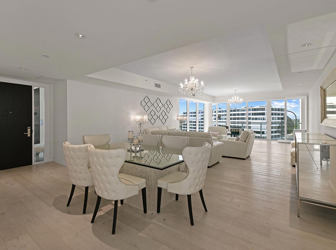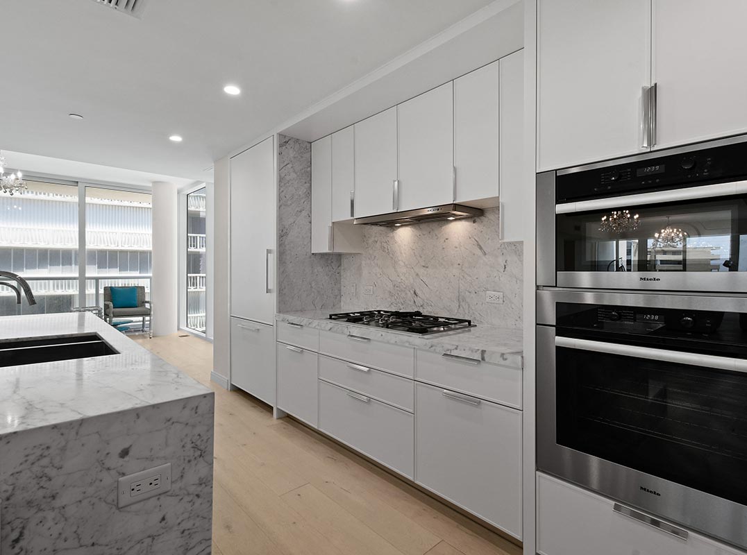 Meticulously designed with contemporary finishes, the home features elegant limestone, rich walnut tones, natural white oak flooring, and sophisticated coral stone accents. The chef's kitchen is equipped with top-of-the-line Miele appliances, perfect for culinary enthusiasts. The spacious primary suite offers stunning ocean views and a spa-inspired bathroom, providing a tranquil retreat. The additional two bedrooms each feature ensuite bathrooms and share a large west-facing balcony.