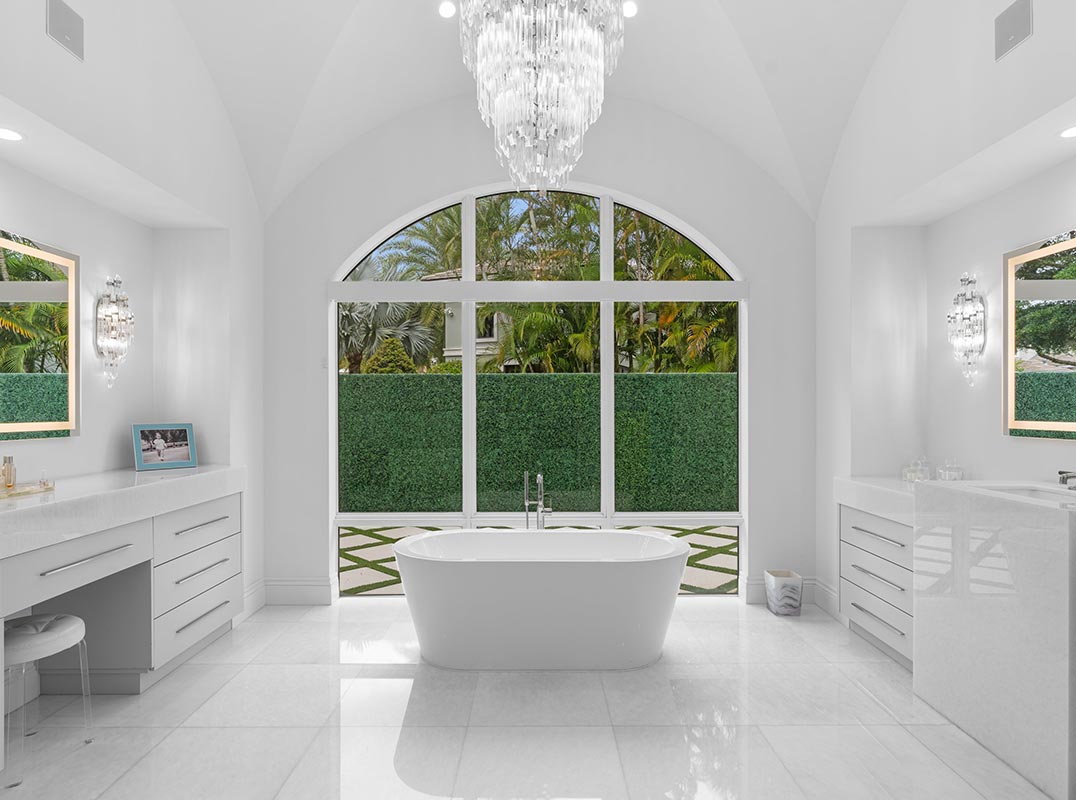 Situated on nearly half an acre with sweeping preserve and golf views, this is one of the most outstanding and refined homes to ever list in the prestigious Country Club of Mirasol. Completely redone to the highest architectural standards, it features five en-suite, oversized bedrooms and 7 bathrooms. Kitchen area was thoughtfully expanded, and includes a custom-designed Downsview kitchen which is outfitted with Miele, Wolf and SubZero appliances. Grand entrance and living area were opened up and floors are all marble or white oak arranged in a subtle herringbone pattern. Every bathroom was customized with highest grade materials (such as marble and quartzite), including his/her bathroom suites. Primary closets are Architectural Digest-worthy! Home features new roof (2021) and gutters, CCTV security, private and expansive office with large window, sound-proof entertaining room, safe room, mud room, 4 car epoxied garage (with room for a lift), 4 new AC units and more. Extra storage designed throughout, including a chef's pantry and mud room. The home is set back to allow for plenty of parking and entrance features 3cm porcelain pavers and marble landing. Backyard was professionally redesigned for an elegant, minimalistic look with low-maintence, high-grade turf surrounding the infinity pool. All impact windows and doors.
